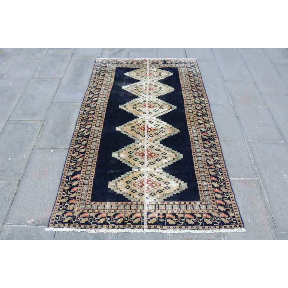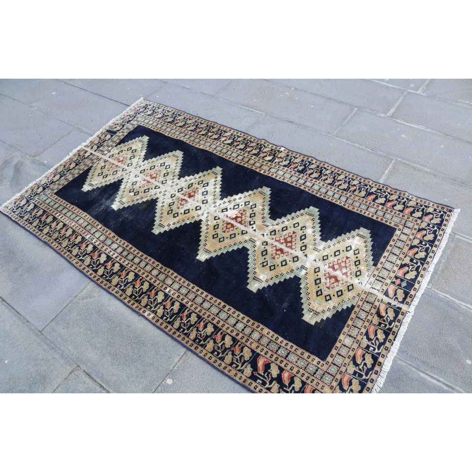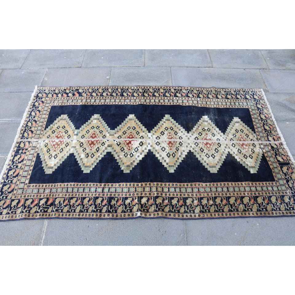 Alfombra Vintage de 3.5x5.7 pies, Alfombra Turca, Alfombra Azul a Rayas de Lana