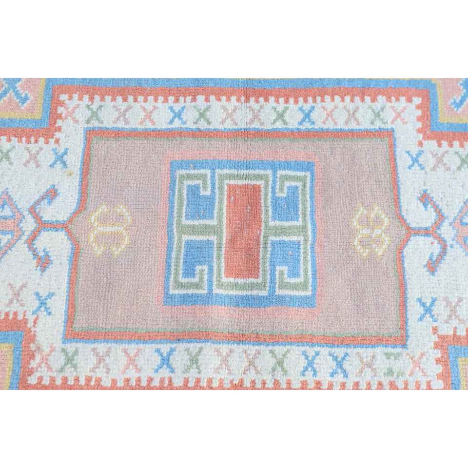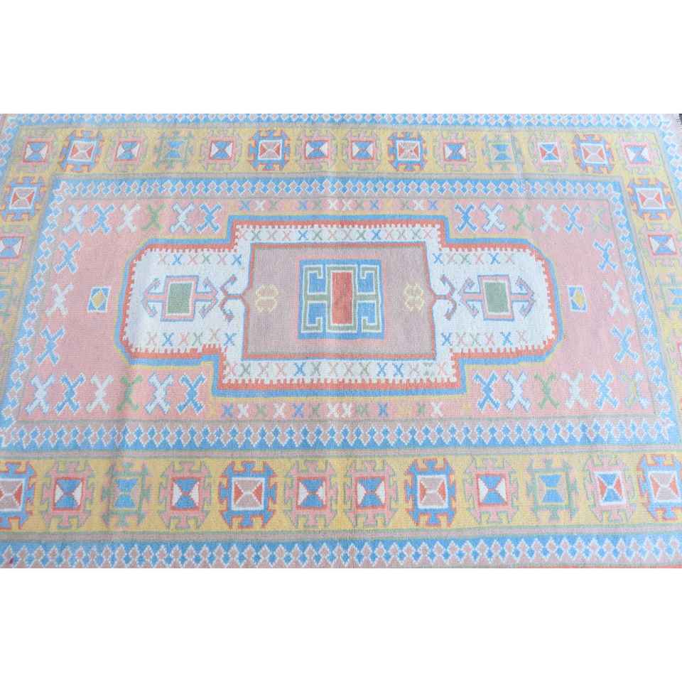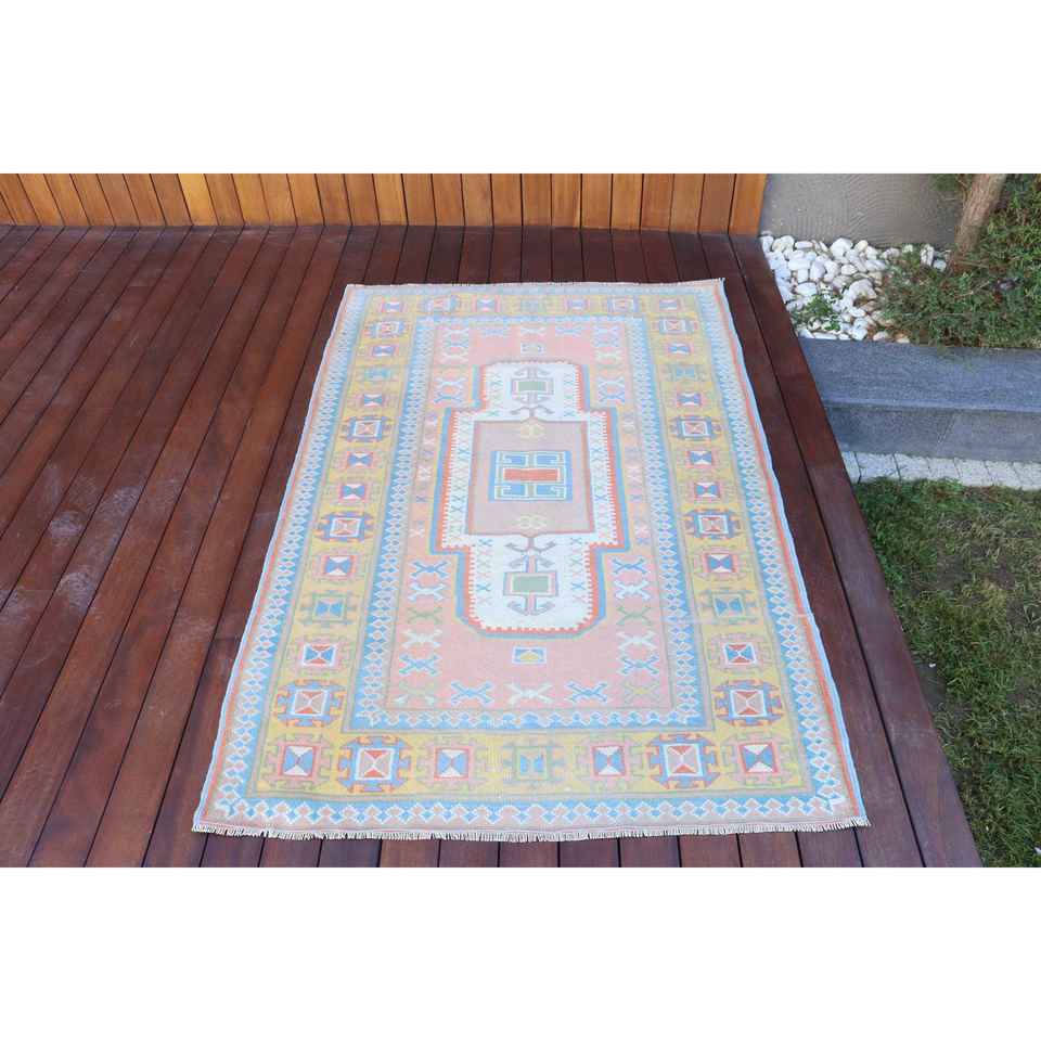 Alfombra Vintage de 3.6x5.2 pies, Alfombra Turca, Alfombra de Lana con Estampado Animal Azul