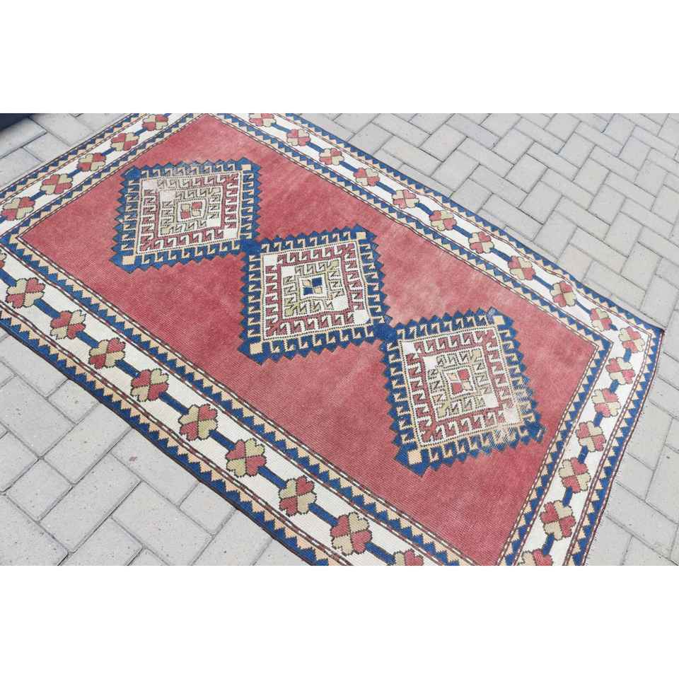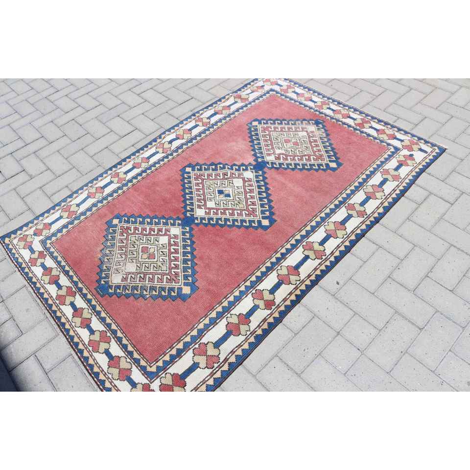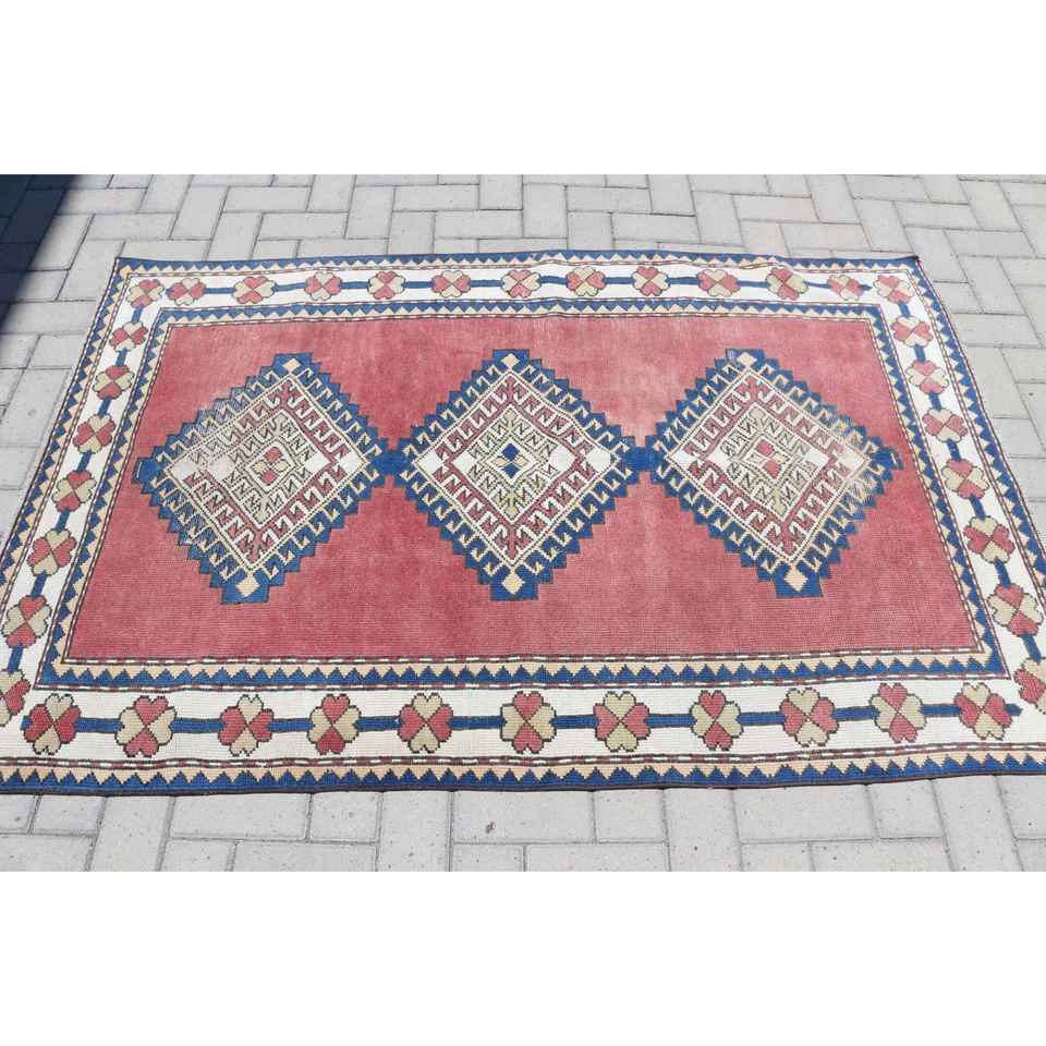 Alfombra Vintage de 3.8x6 pies, Alfombra Turca, Alfombra de Lana Roja Marroquí
