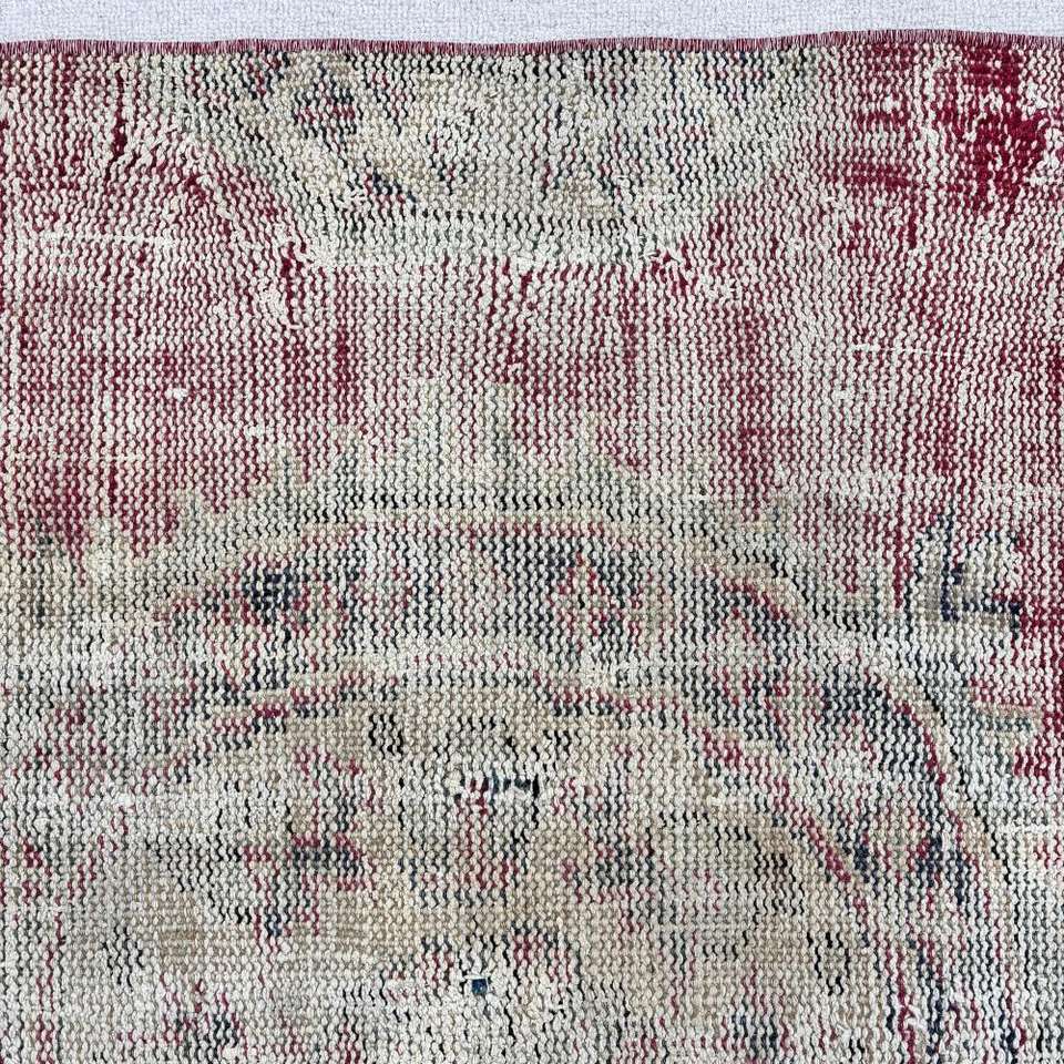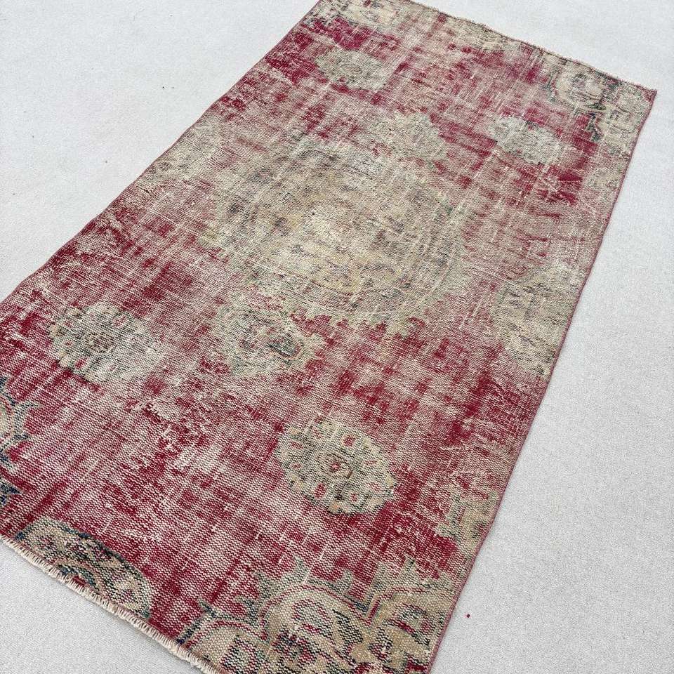 Alfombra Vintage de 3.9x7.3 pies, Alfombra Turca, Alfombra de Lana con Parches Rojos