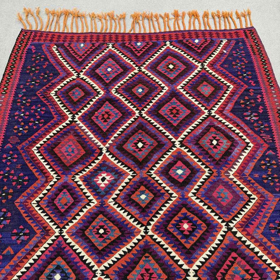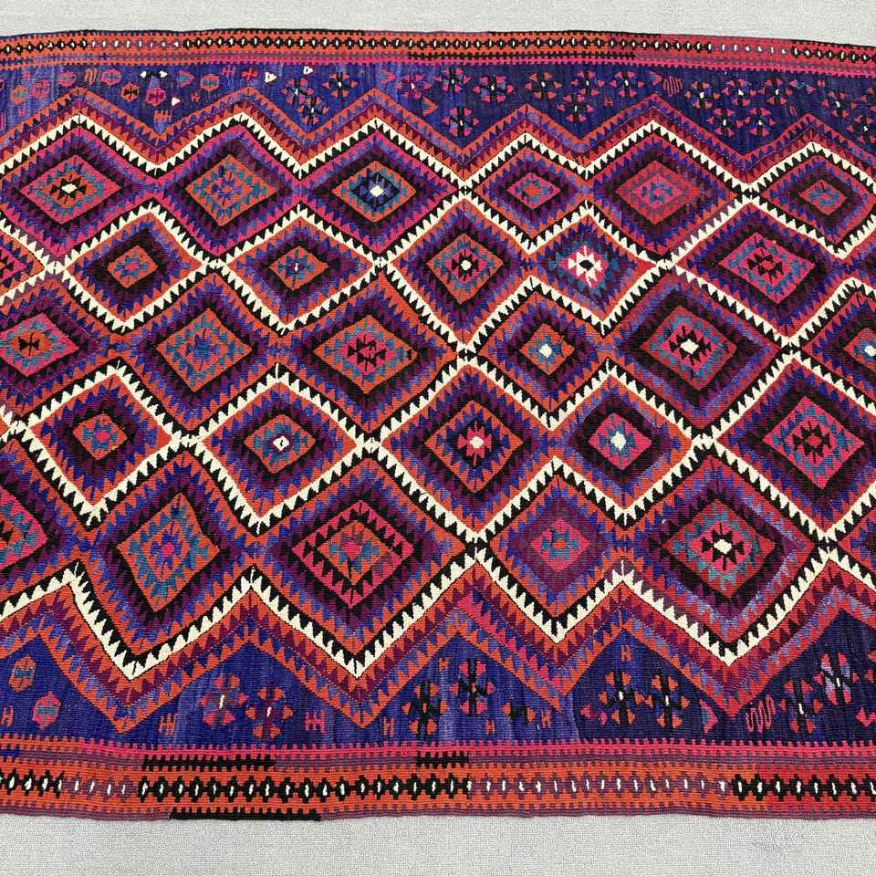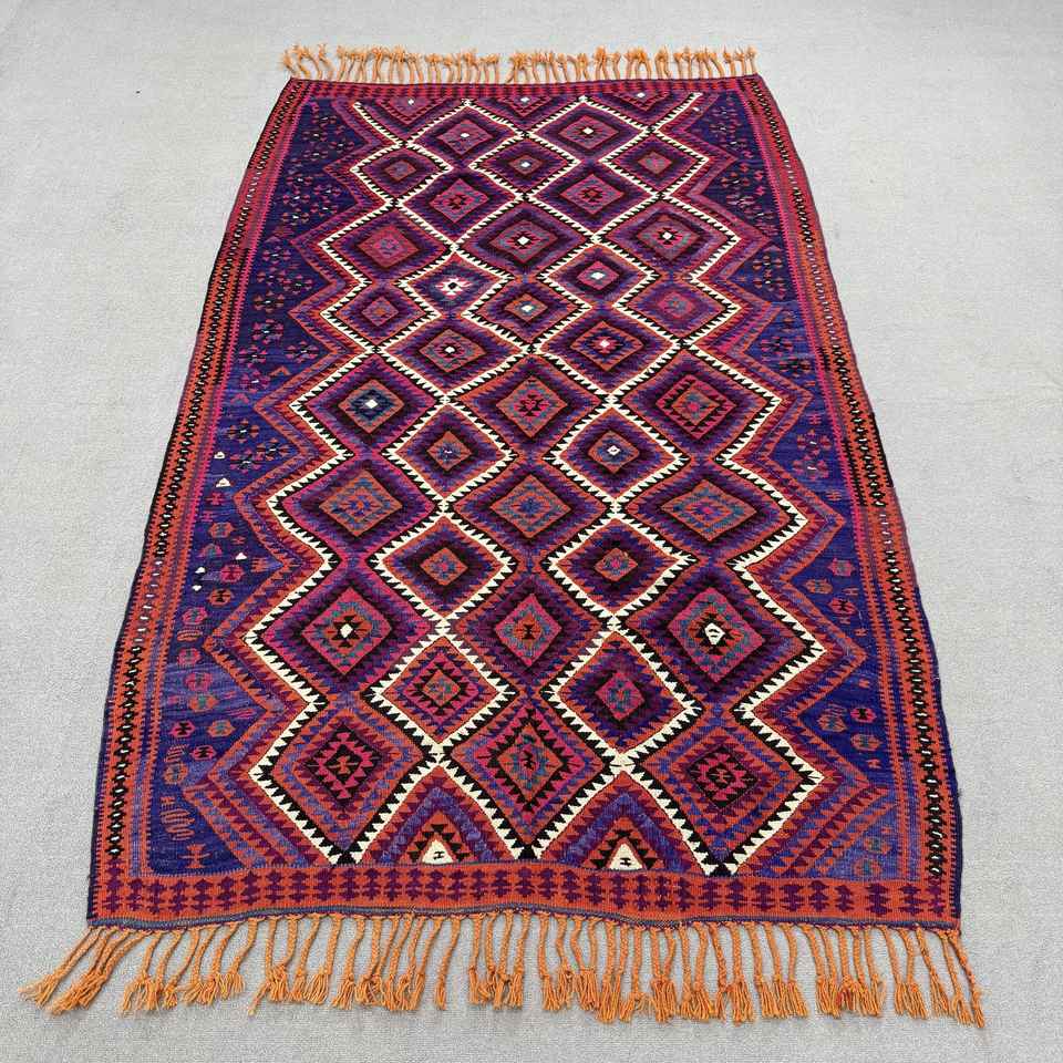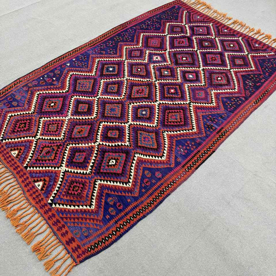 Alfombra Vintage de 4.1x7.3 pies, Alfombra Turca, Alfombra de Lana con Diseño Floral Azul