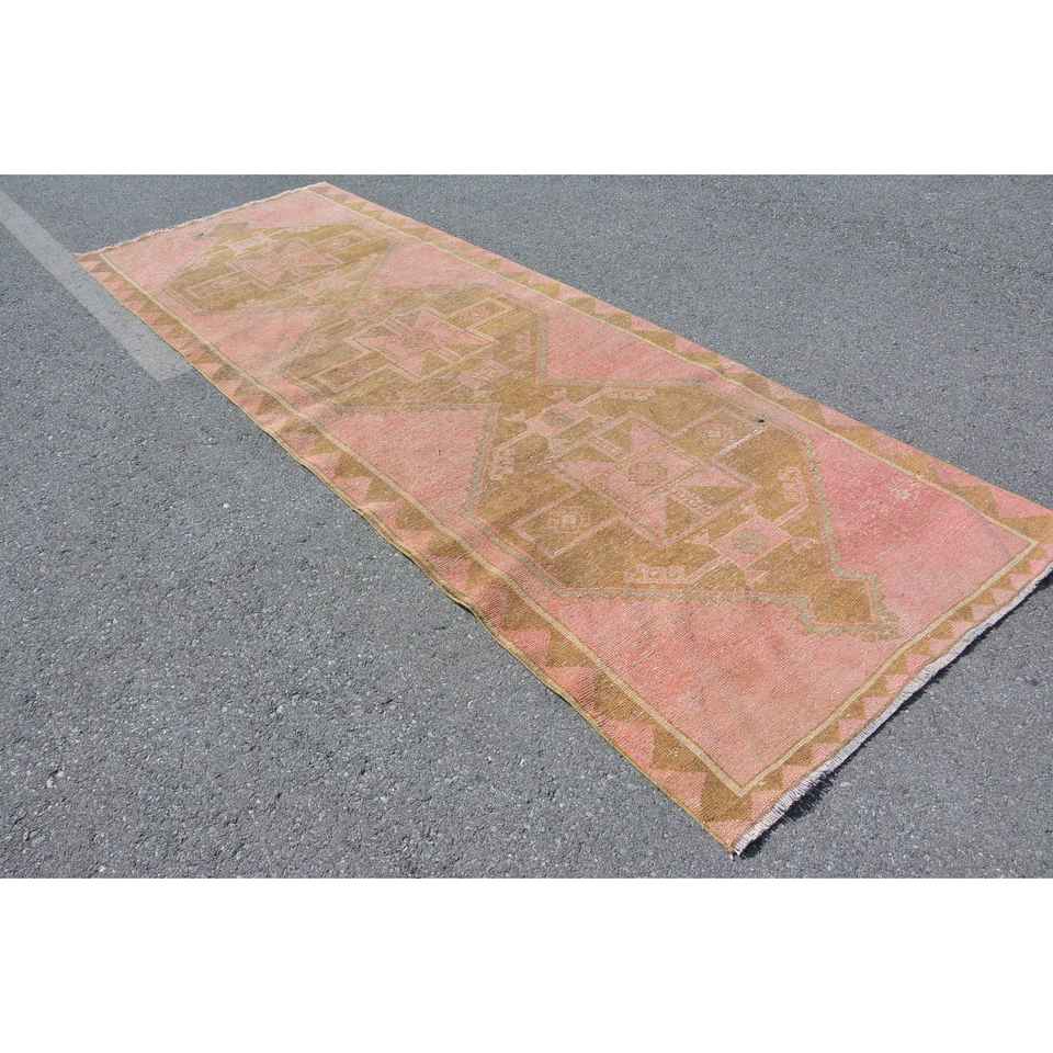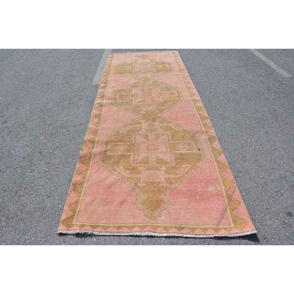 Alfombra Vintage de 4.3x12.3 pies, Alfombra Turca, Alfombra de Lana Roja Marrón Estilo Suroeste
