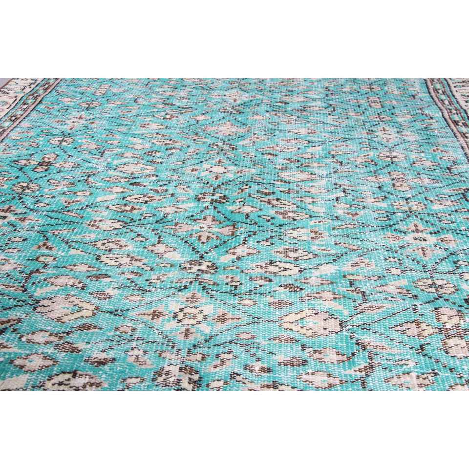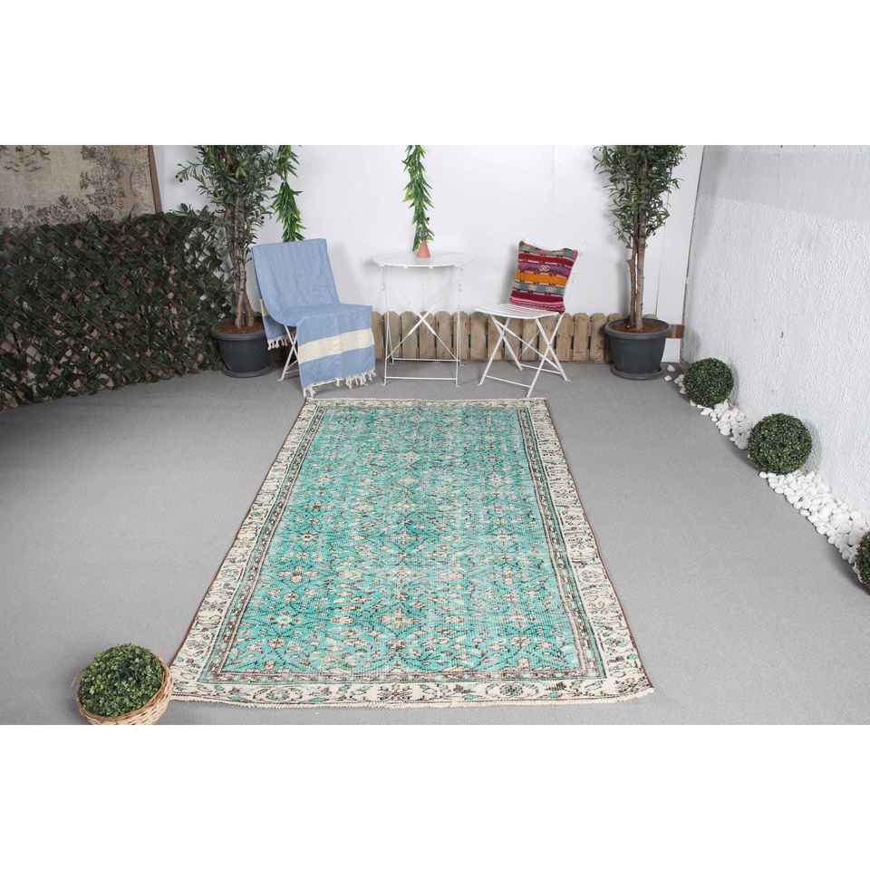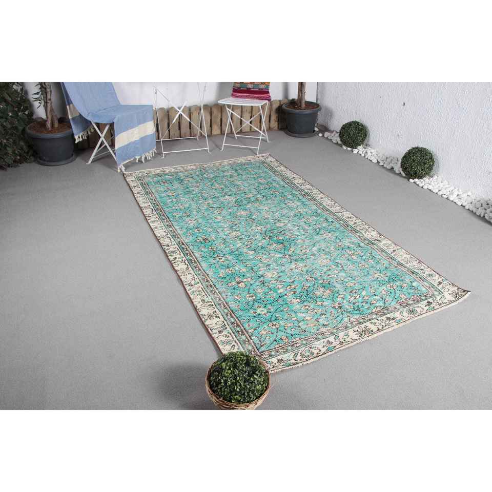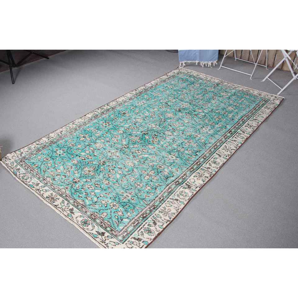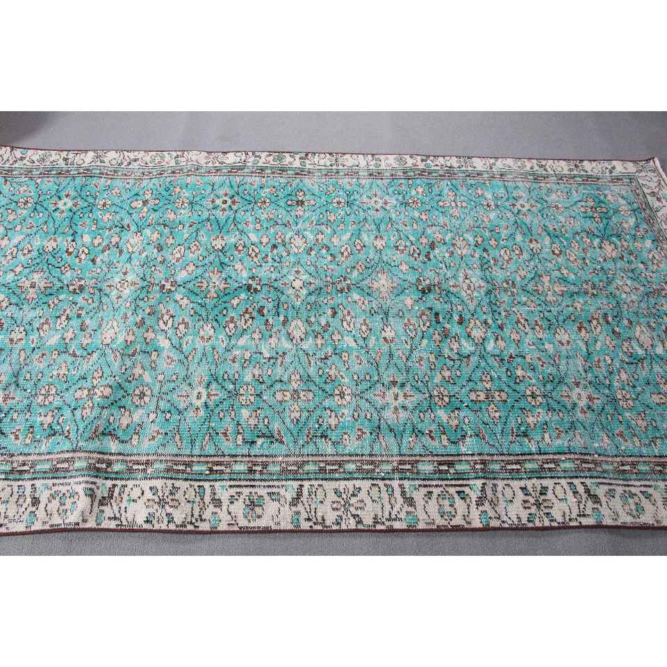 Alfombra Vintage de 4.4x7.5 pies, Alfombra Turca, Alfombra de Lana con Diseño Floral Azul