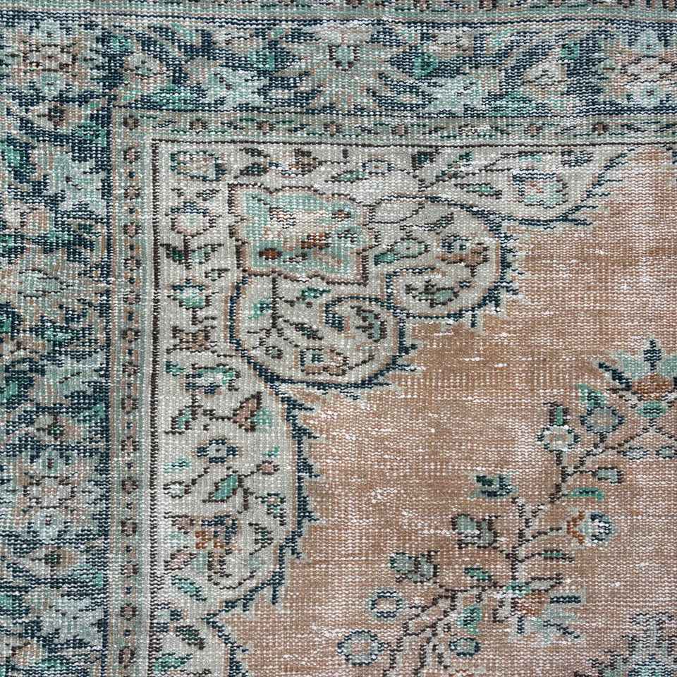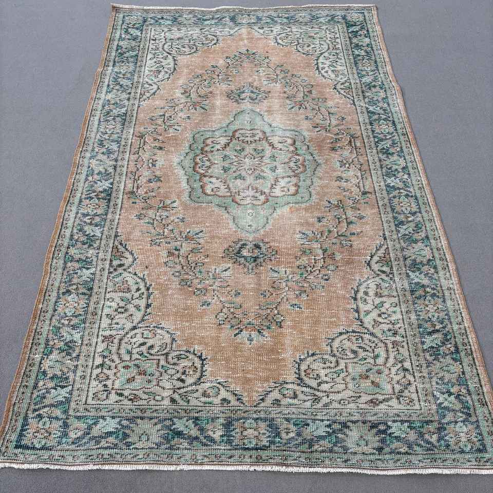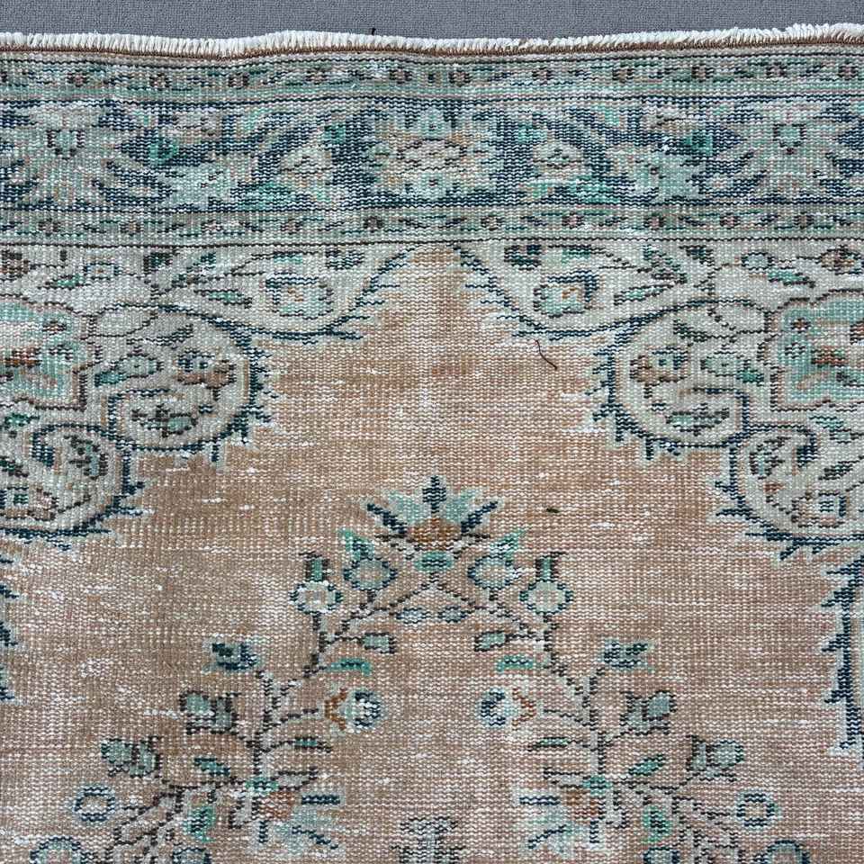 Alfombra Vintage de 5.1x8.2 pies, Alfombra Turca Grande, Alfombra Marroquí de Lana Azul Marrón