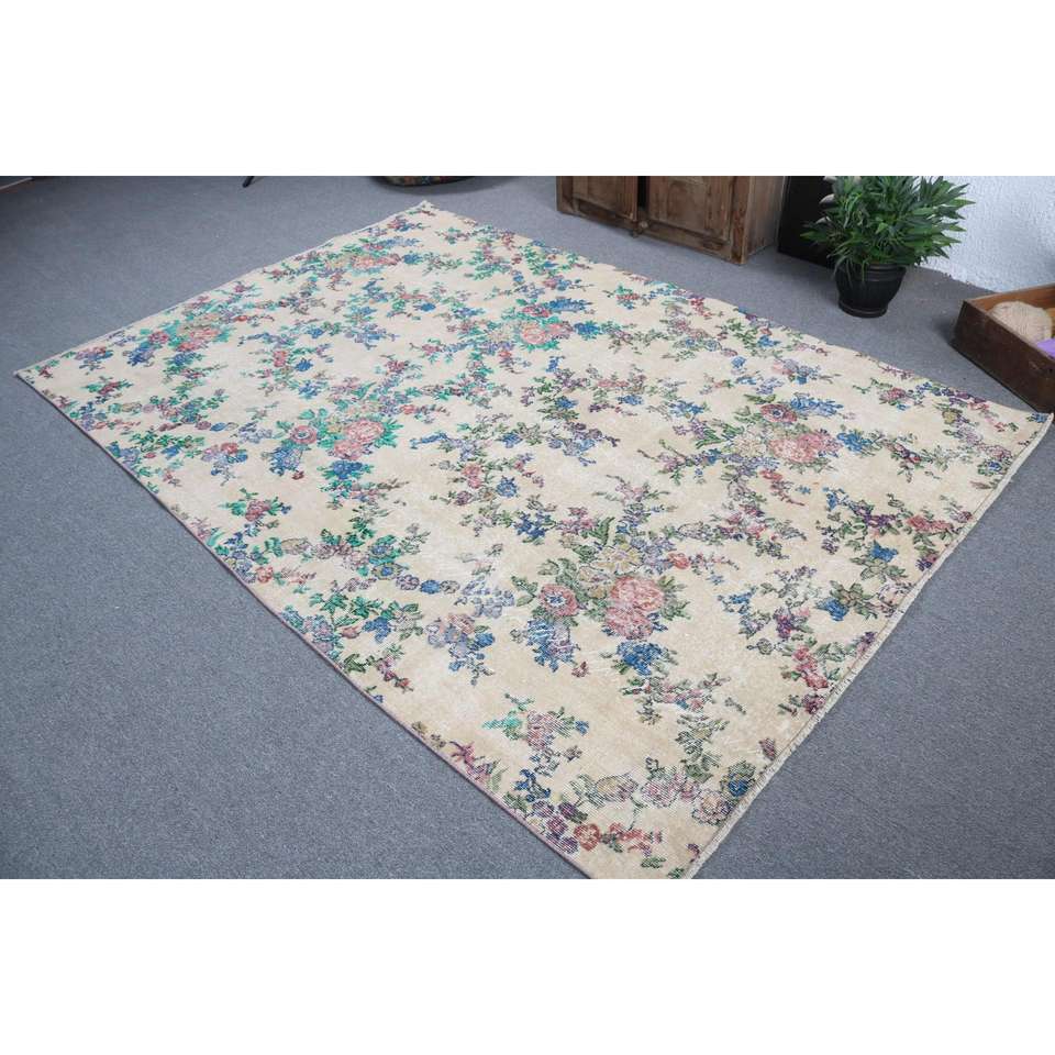 Alfombra Vintage de 5.7x8.4 pies, Alfombra Turca Grande, Alfombra con Estampado Animal Azul y Rojo