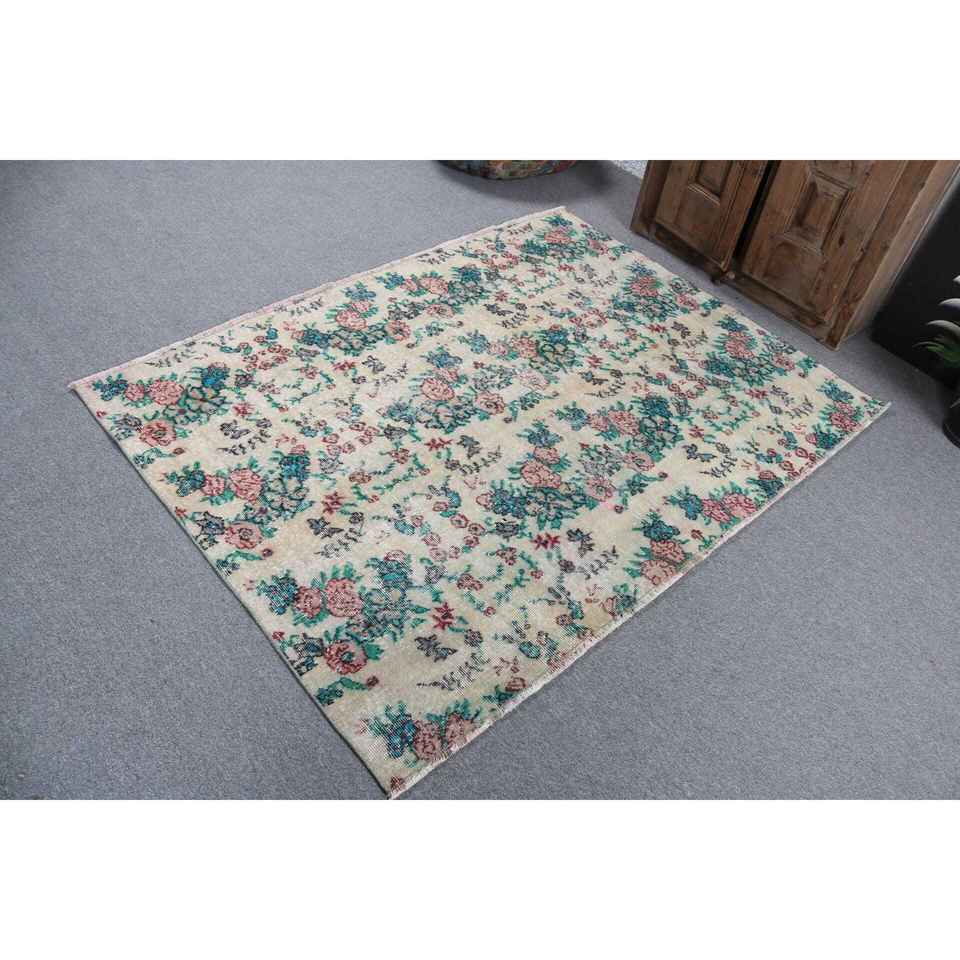 Alfombra Vintage de 5.9x4.3 pies, Alfombra Turca, Alfombra de Lana Azul con Diseño de Patchwork