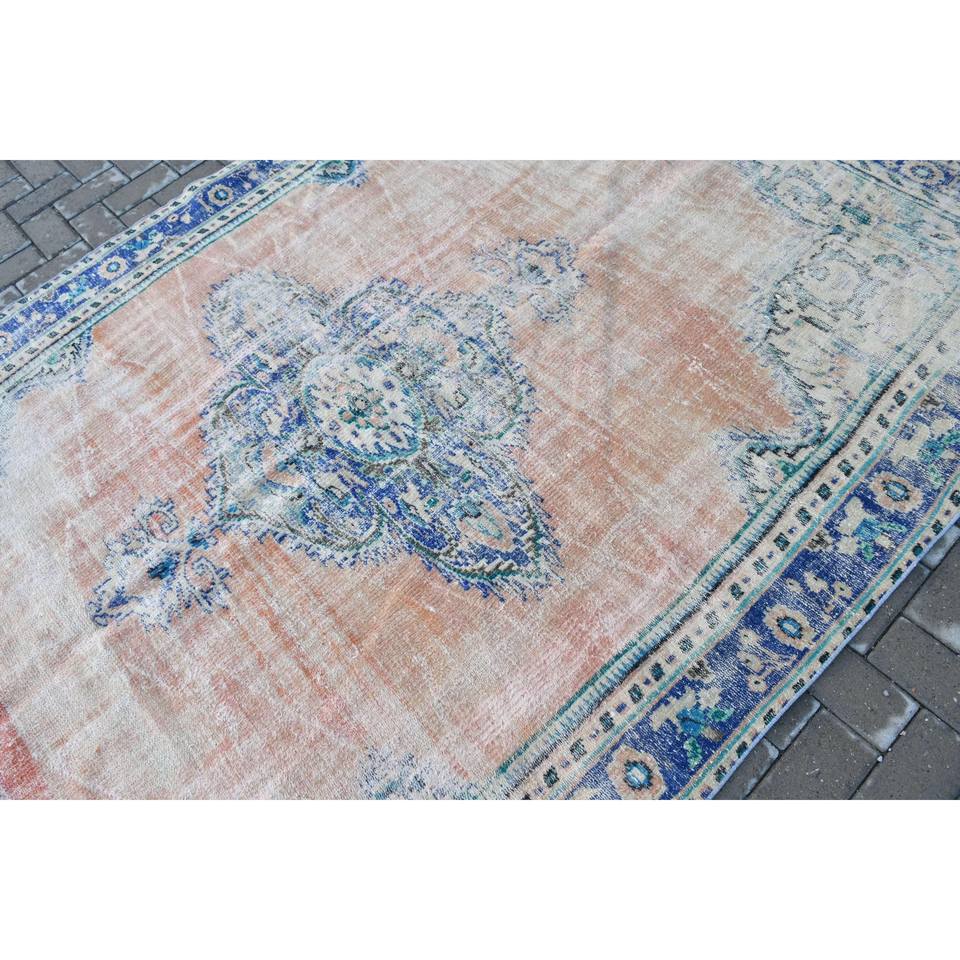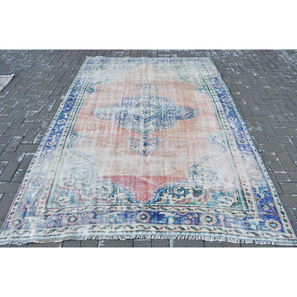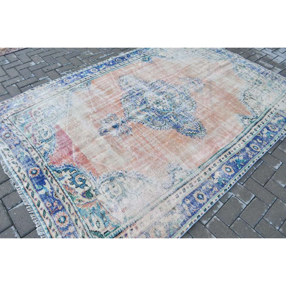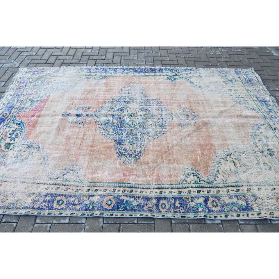 Alfombra Vintage de 6x8.9 pies, Alfombra Turca Grande, Alfombra de Lana a Cuadros Azul y Roja