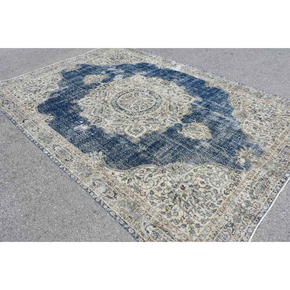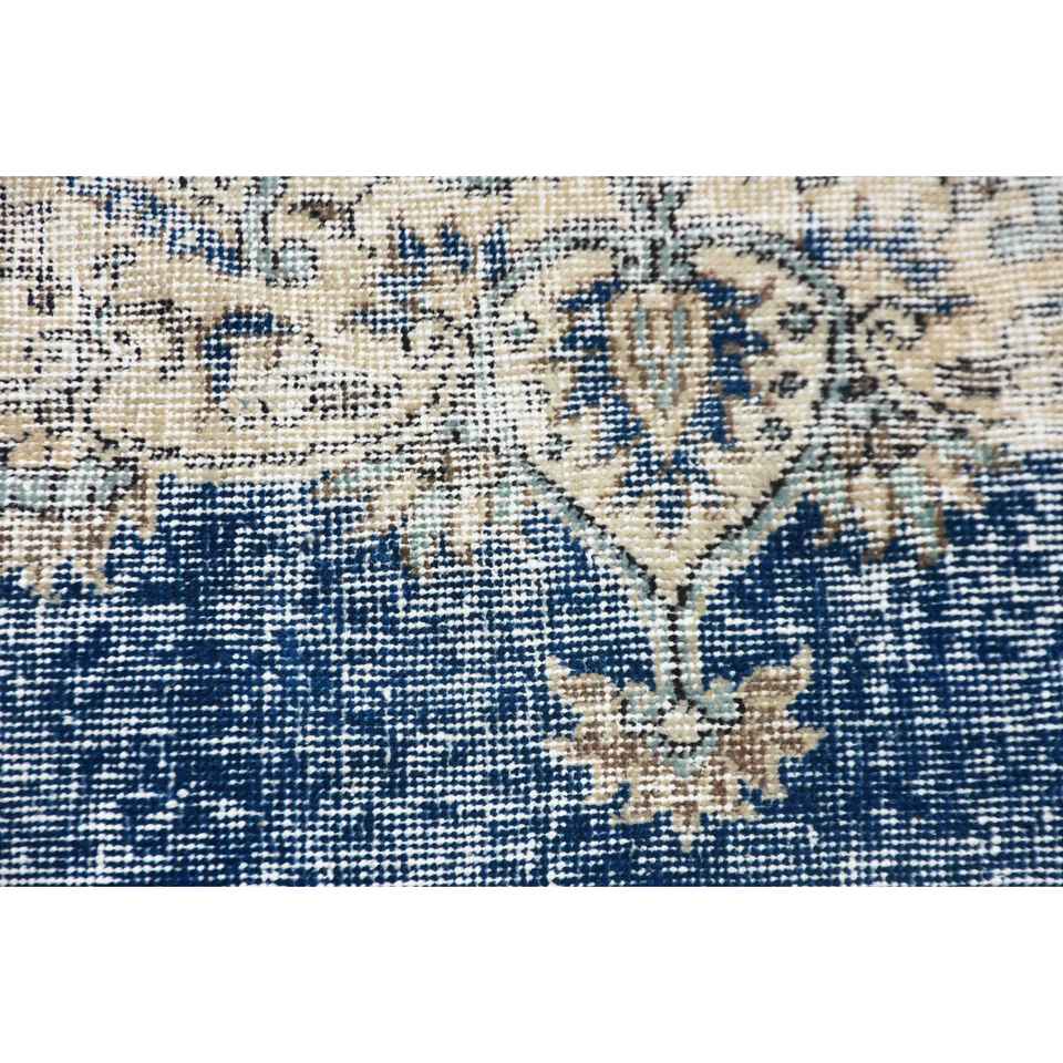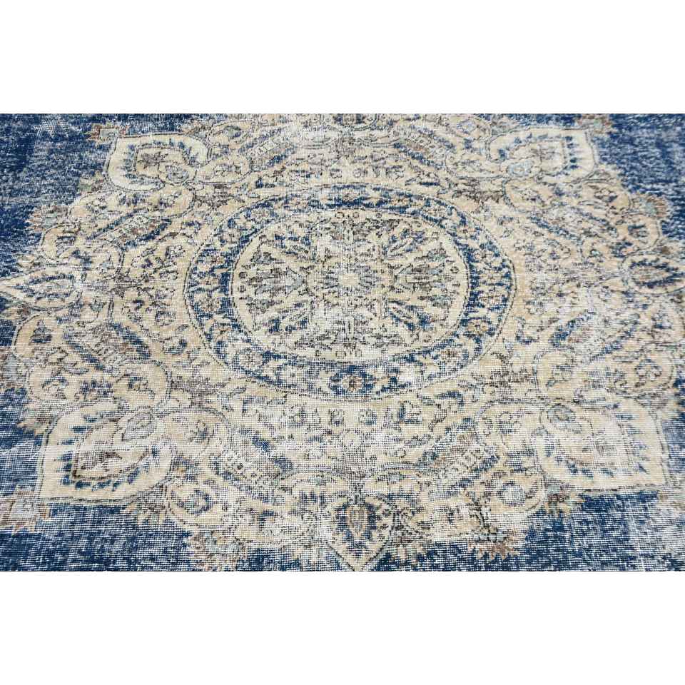 Alfombra vintage de 7.8x11.2 pies, alfombra turca, alfombra azul con lunares de lana