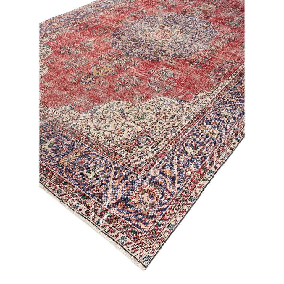 Alfombra Vintage de Lana 9x12, Anudada a Mano, con Diseño de Medallón Rojo y Naranja, Rectangular, Abstracta, para Pasillo, Entrada, Sala de Estar