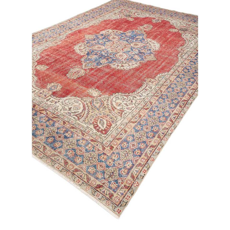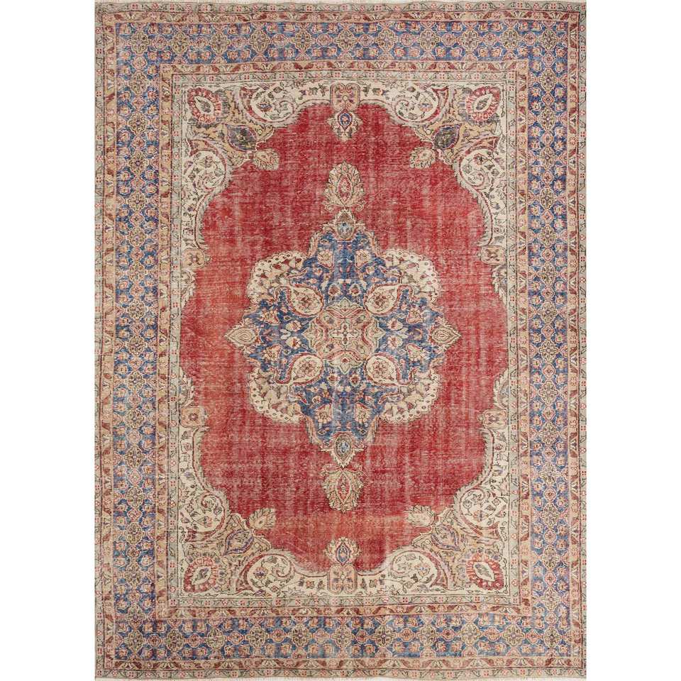 Alfombra Vintage de Lana 9x12, Tejida a Mano, con Medallón Rojo Naranja, Rectangular, Estilo Patchwork, para Entrada del Hogar - Modelo Pae-5038