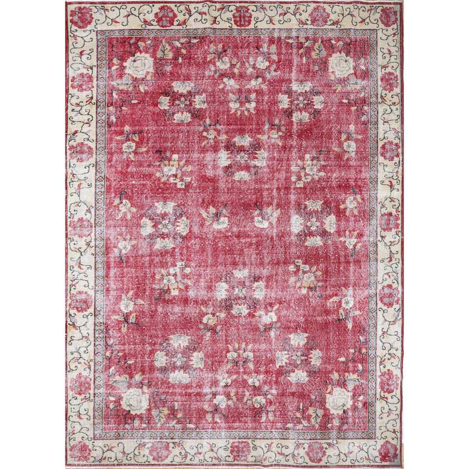 Alfombra Vintage de Lana 9x12, Roja y Naranja, Anudada a Mano, con Patrones Florales Abstractos y Rectangulares, para Entrada del Hogar, Habitación de Adolescentes - Pae-2426
