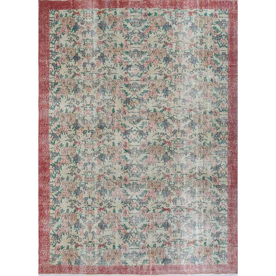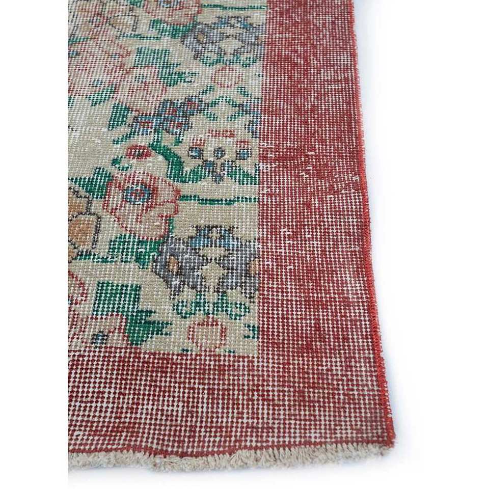 Alfombra Vintage de Lana 9x12, Roja y Naranja, Anudada a Mano con Diseños Florales y Abstractos para la Entrada del Hogar o la Habitación de Adolescentes - Pae-2890