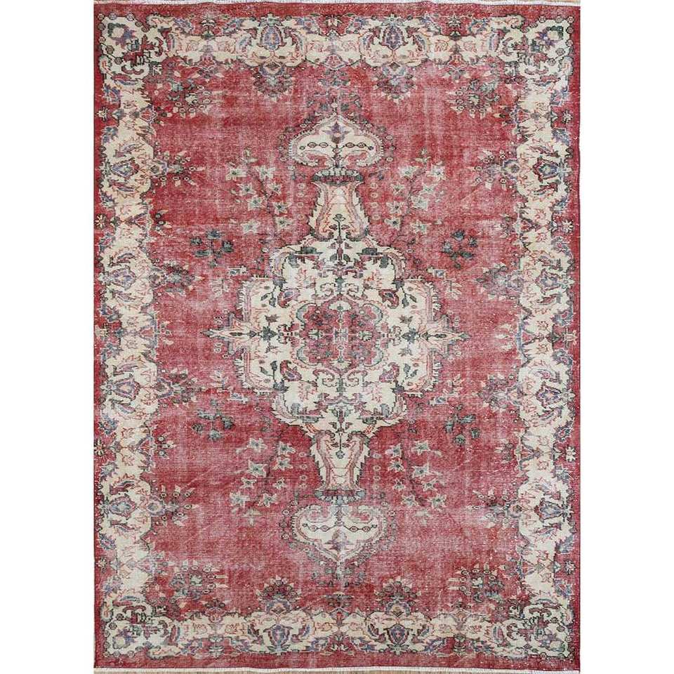 Alfombras Vintage de Lana 9x12 en Rojo Anaranjado, Anudadas a Mano con Patrón de Medallón para Uso Doméstico - para Dormitorio, Sala de Estar, Pasillo, Modelo Pae-2600