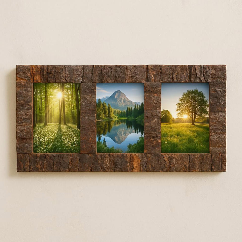 Nombre del producto:Marco DE FOTOS Collage de madera de mango con corteza real