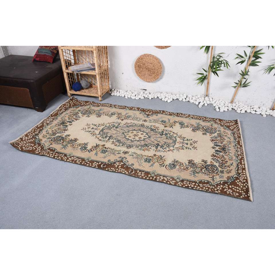 Alfombra Vintage de 3,7x6,9 pies (113x210 cm), Alfombra Turca de Lana Beige Ombré