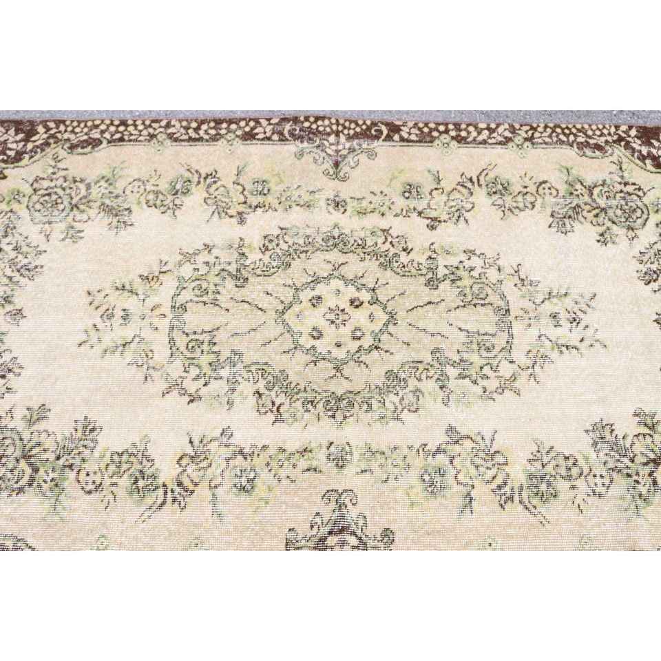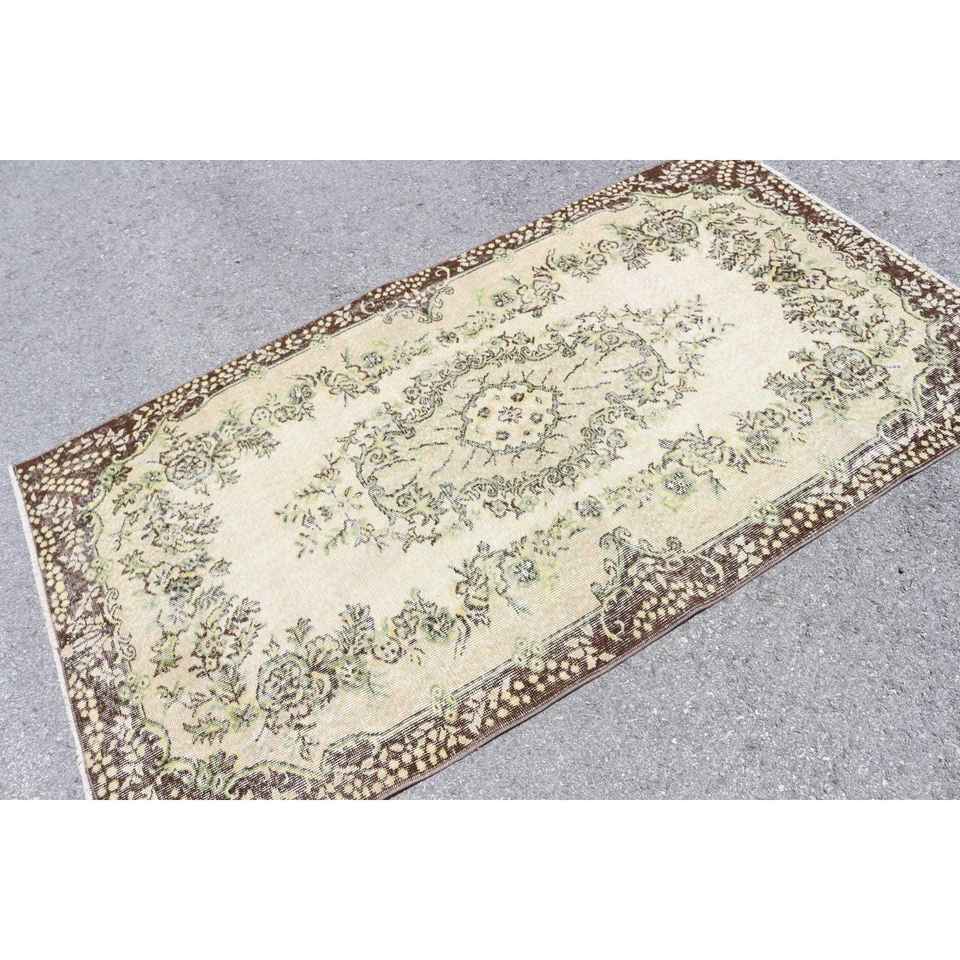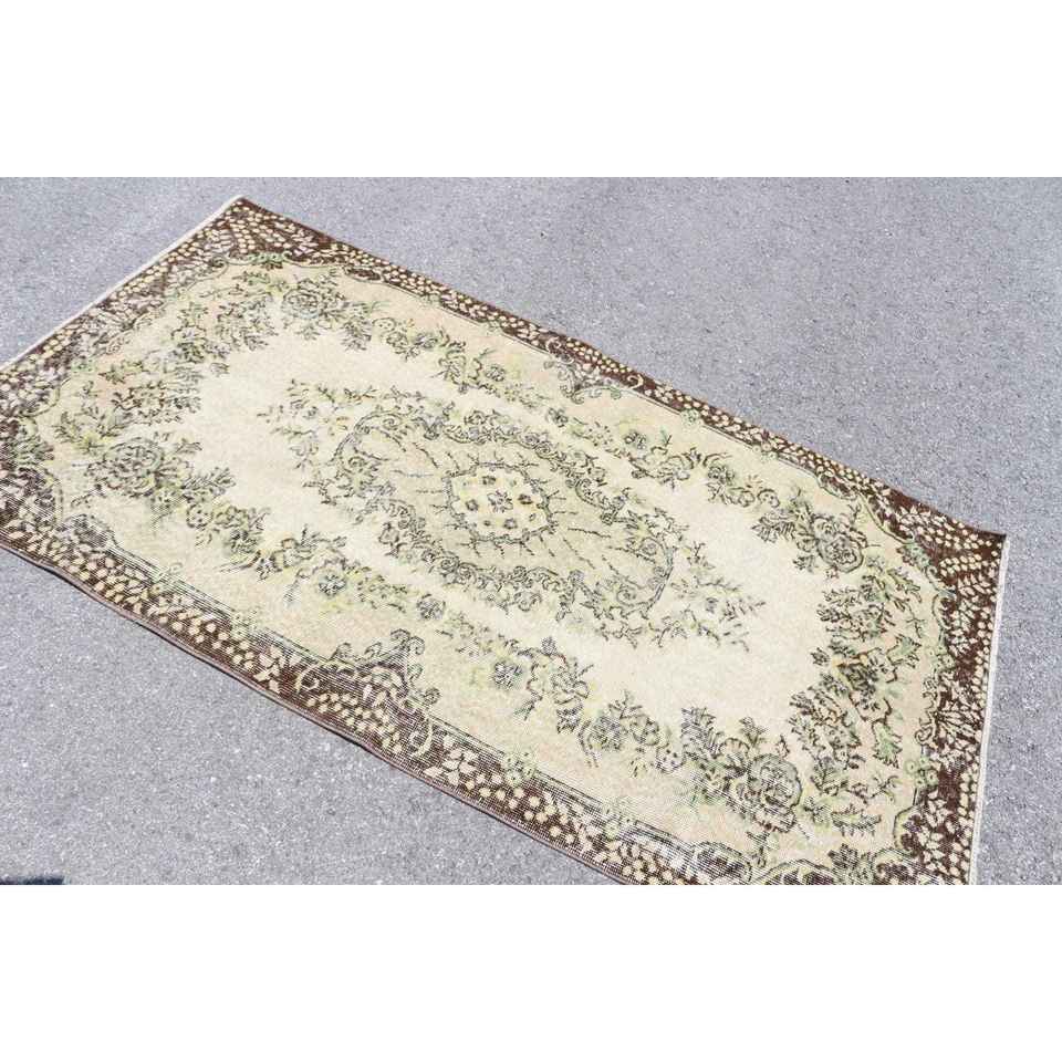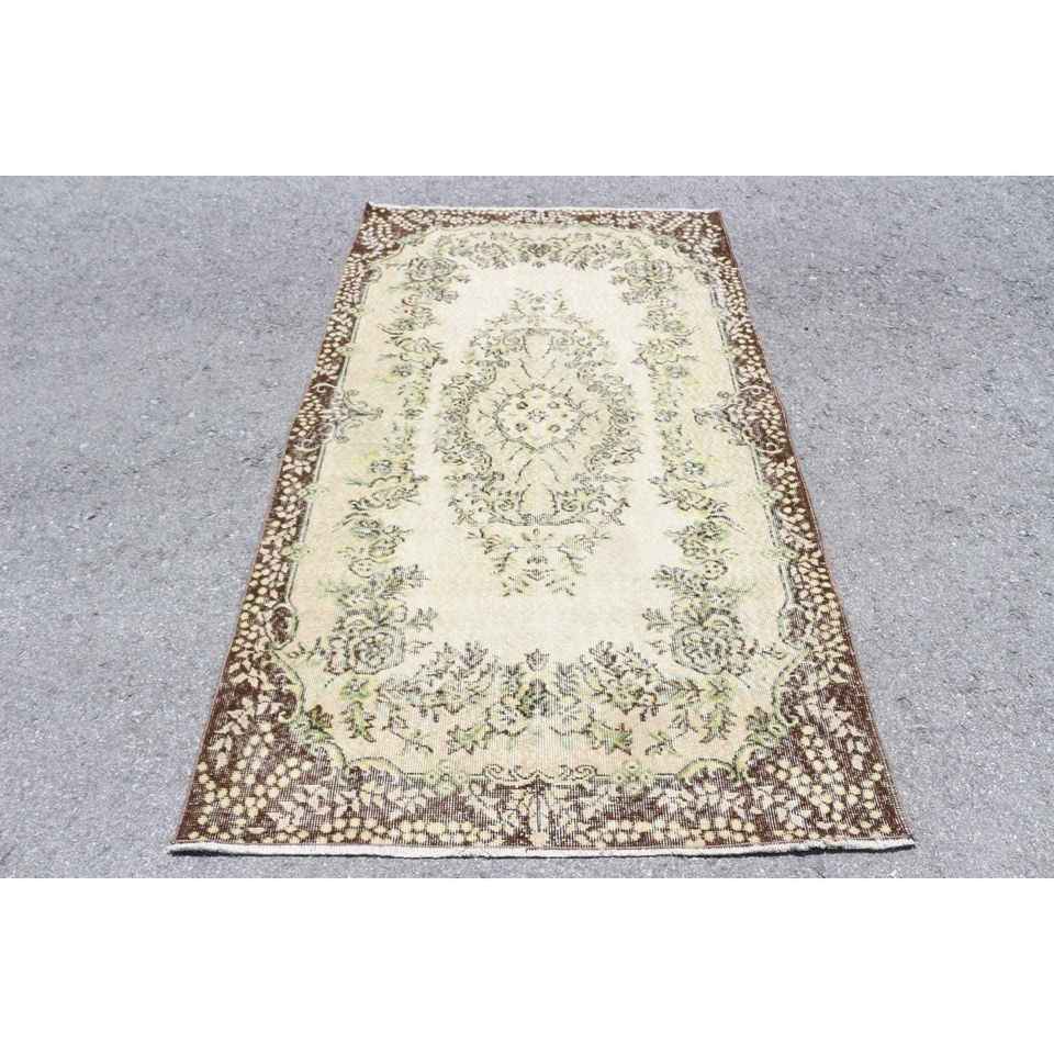 Alfombra Vintage de 3.8x6.7 pies, Alfombra del Suroeste Marrón y Verde de Lana