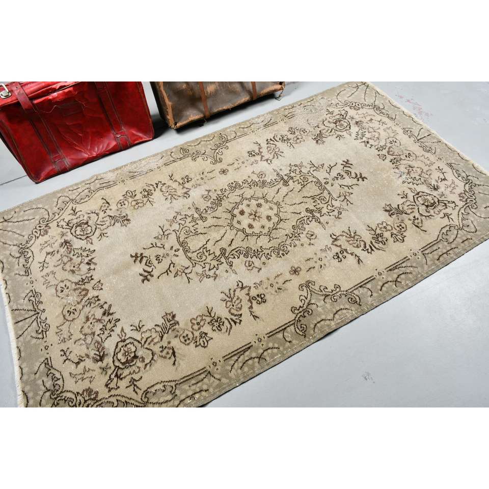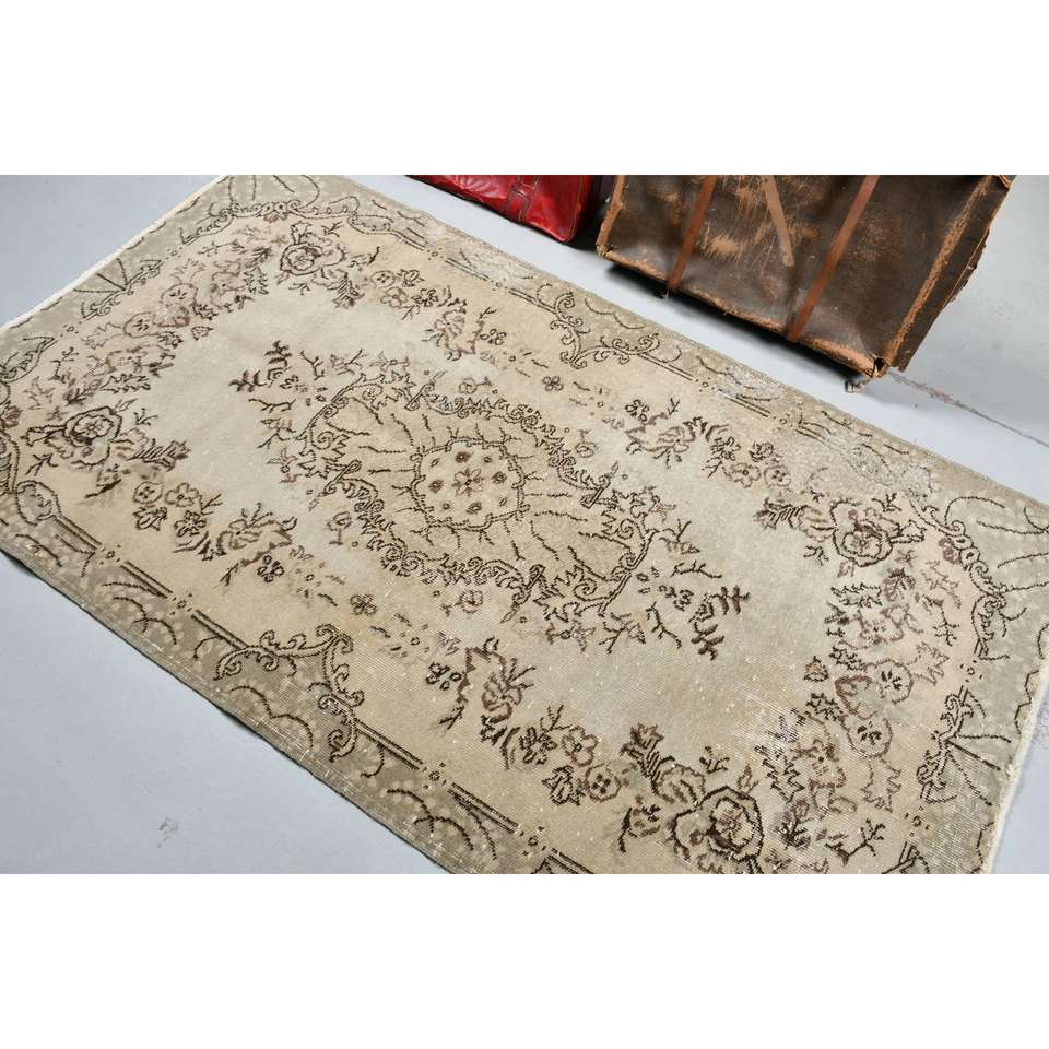 Alfombra vintage de 3.9x7 pies (120x212 cm), alfombra turca con diseño de plantas y árboles marrones