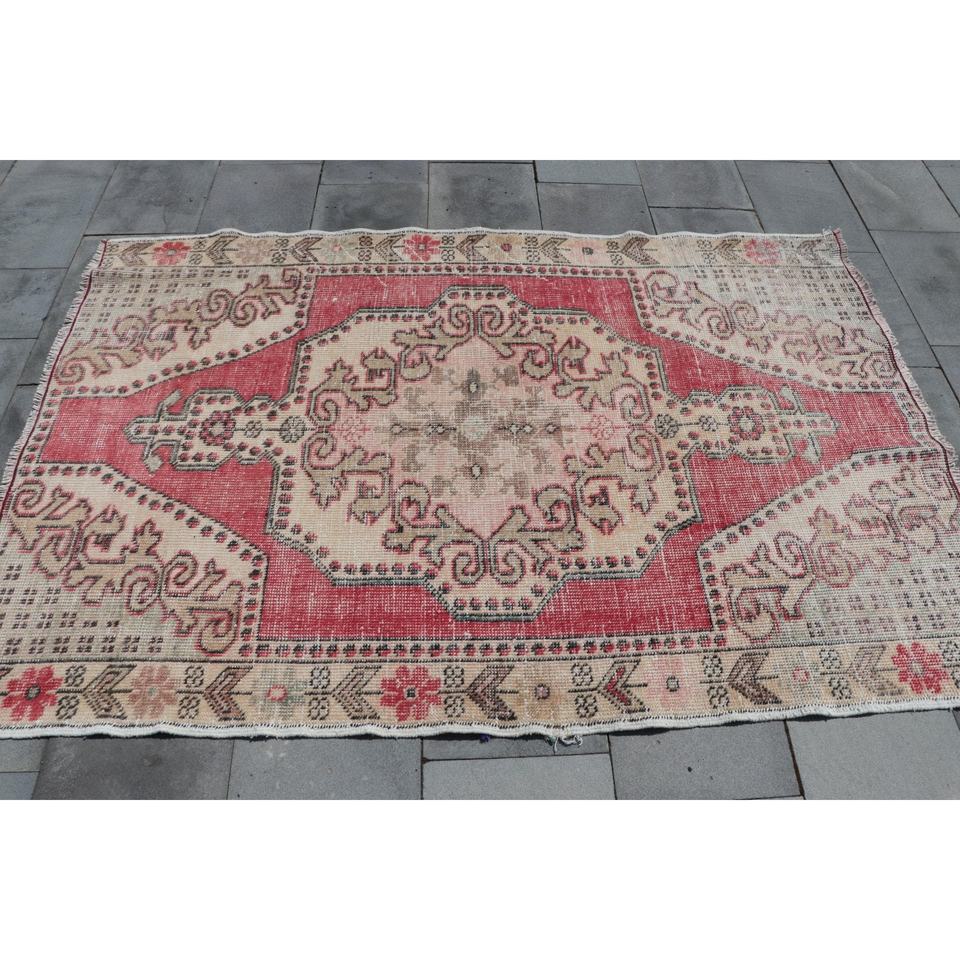 Alfombra Antigua de 4.3x6.4 pies, Alfombra Oriental Roja y Blanca de Lana