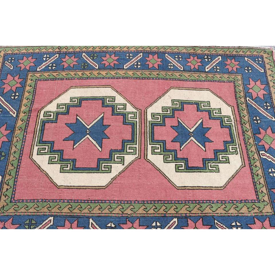 Alfombra Vintage de 4.7x6.2 pies (143x190 cm), Alfombra Turca Azul con Diseño Floral