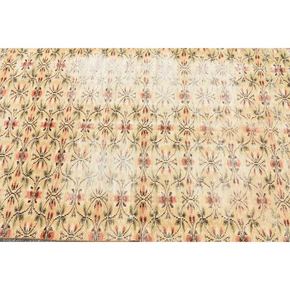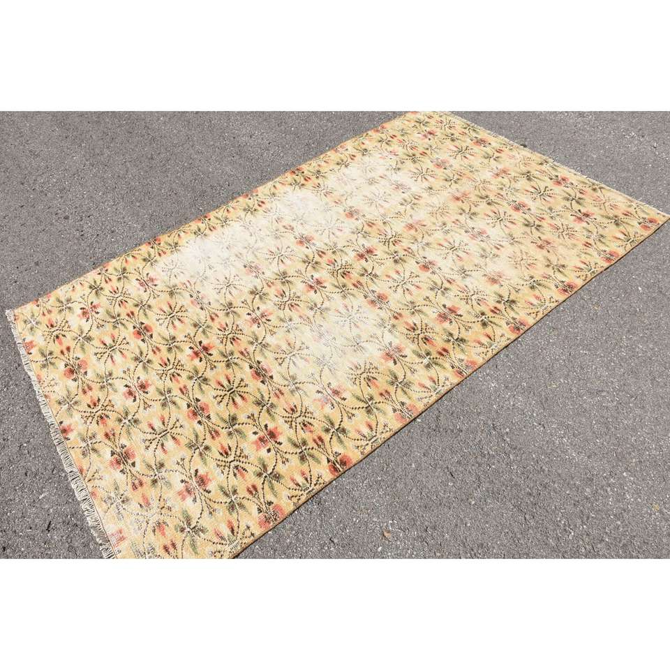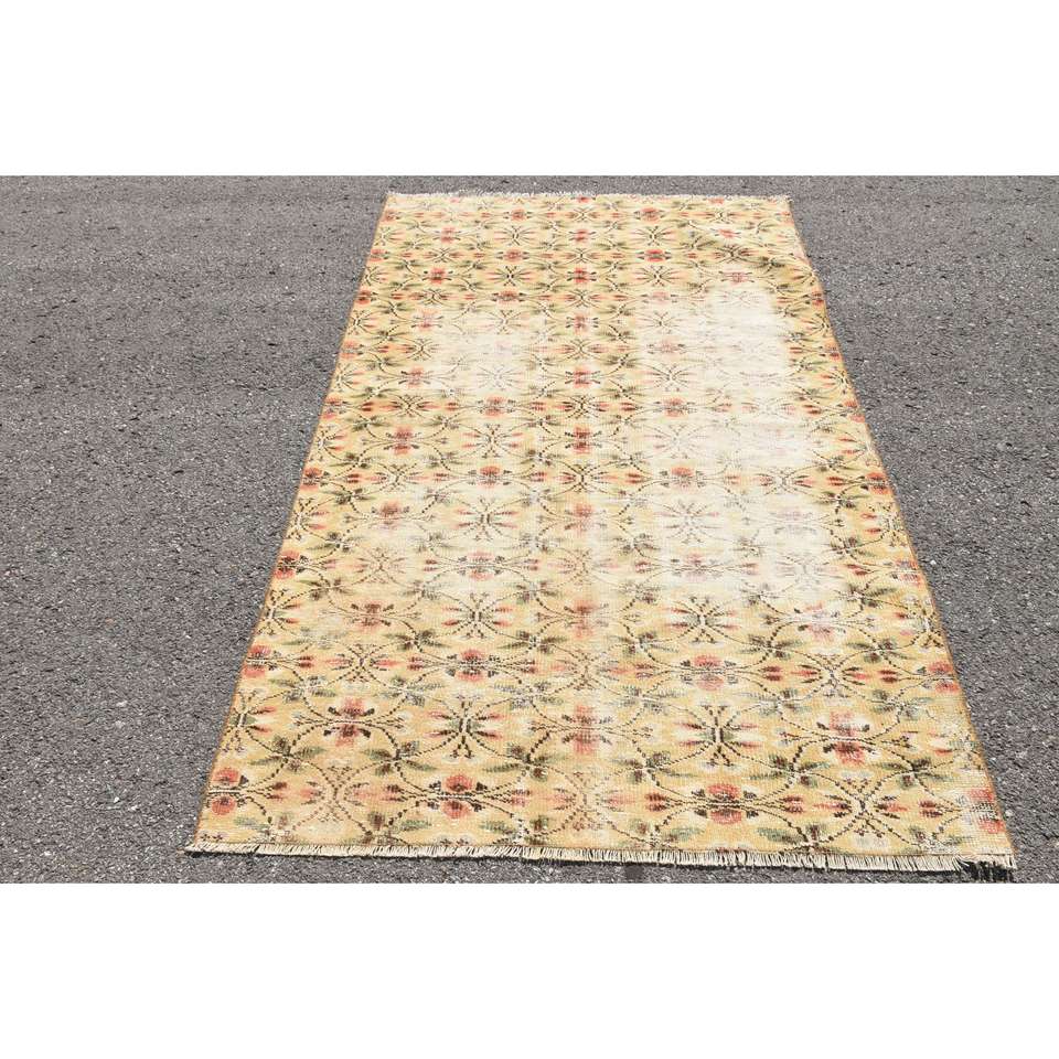 Alfombra Vintage de 4.8x7.8 pies, Alfombra Turca Amarilla de Lana del Suroeste