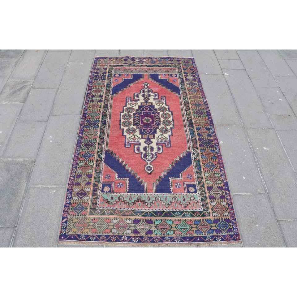 Alfombra Antigua de Lana Turca Oriental Roja de 4x7.2 pies