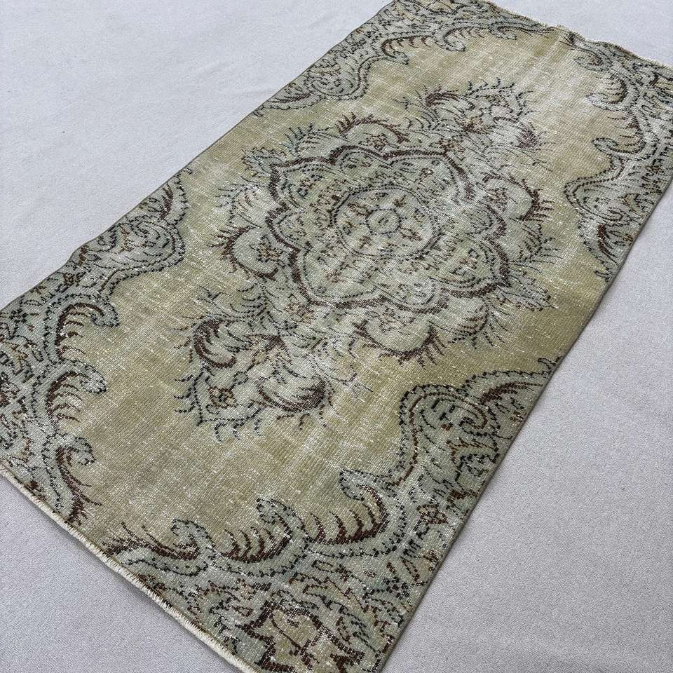 Alfombra Vintage de 4x7.4 pies (122x227 cm), Alfombra Oriental Turca de Lana Verde