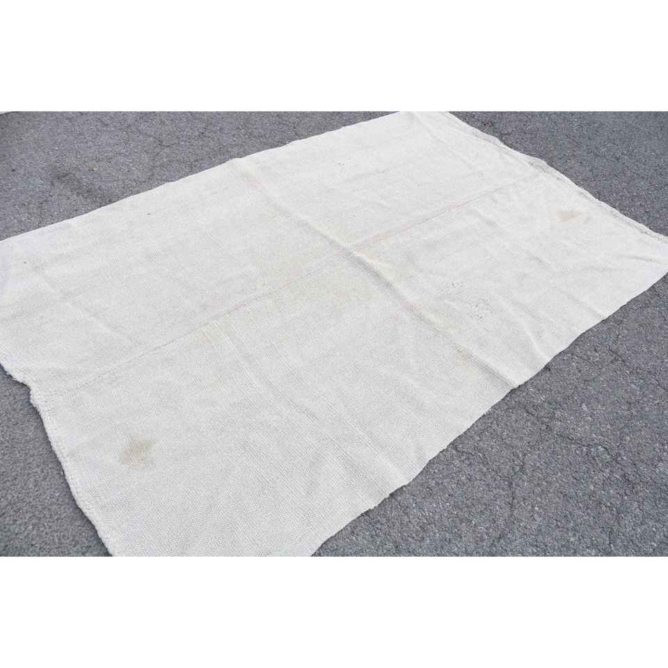 Alfombra Vintage de 5.2x7.6 pies (160x232 cm), Alfombra Turca Blanca Abstracta de Lana