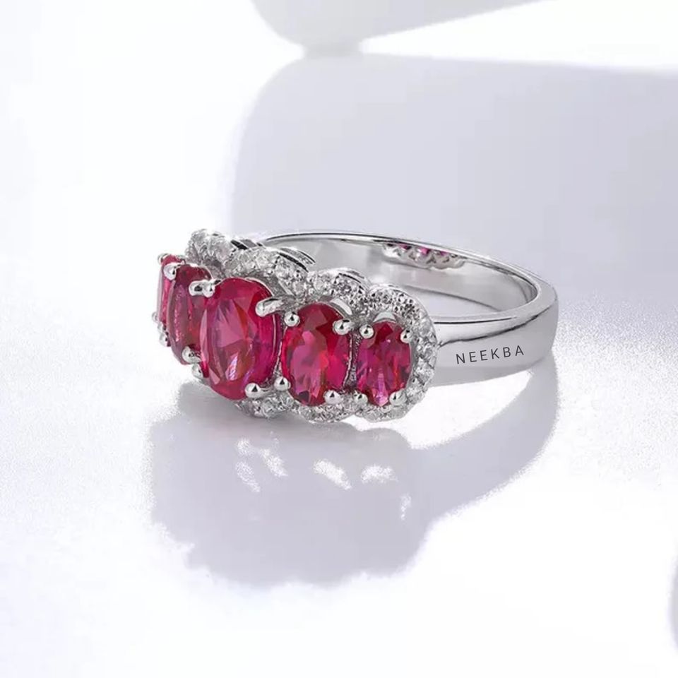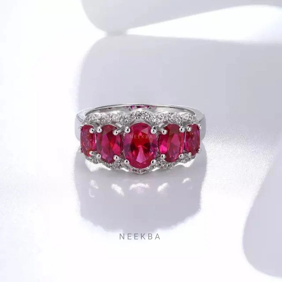 Piedras laterales:Rubí del laboratorio, Moissanite