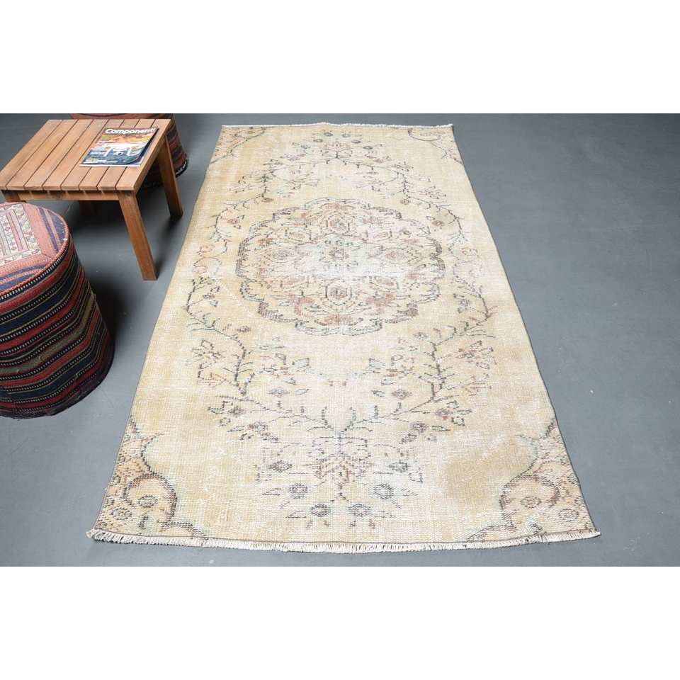 Alfombra de lana Floral Beige Vintage hecha a mano de 10mm de espesor grande 4x7,1 pies rectángulo Patchwork pasillo Oriental para habitación de adolescente látex