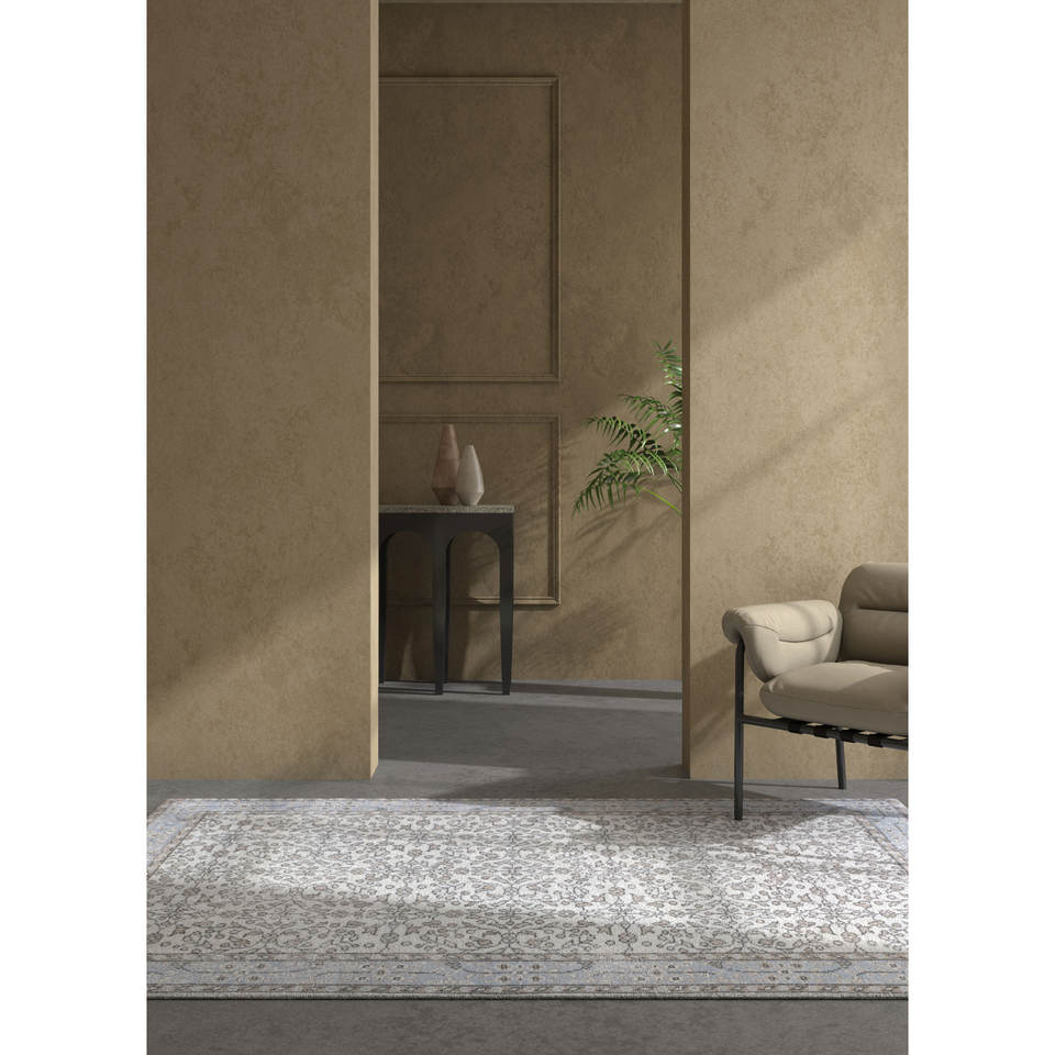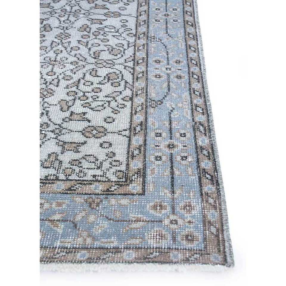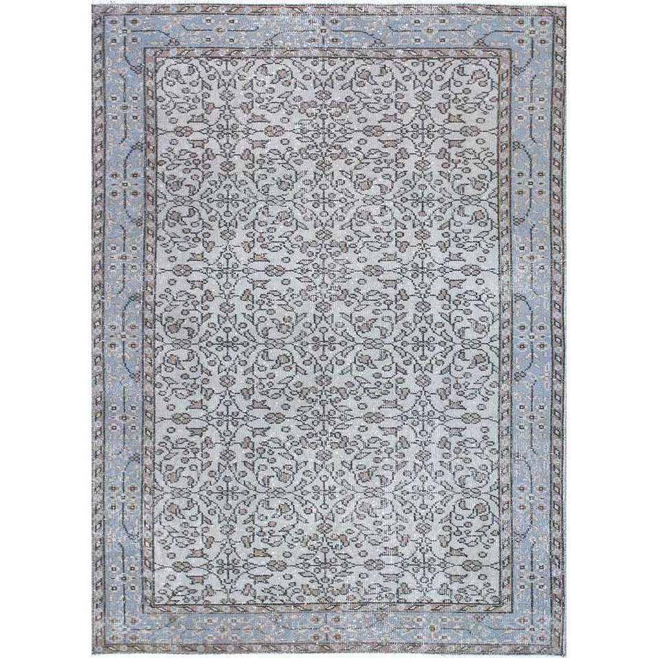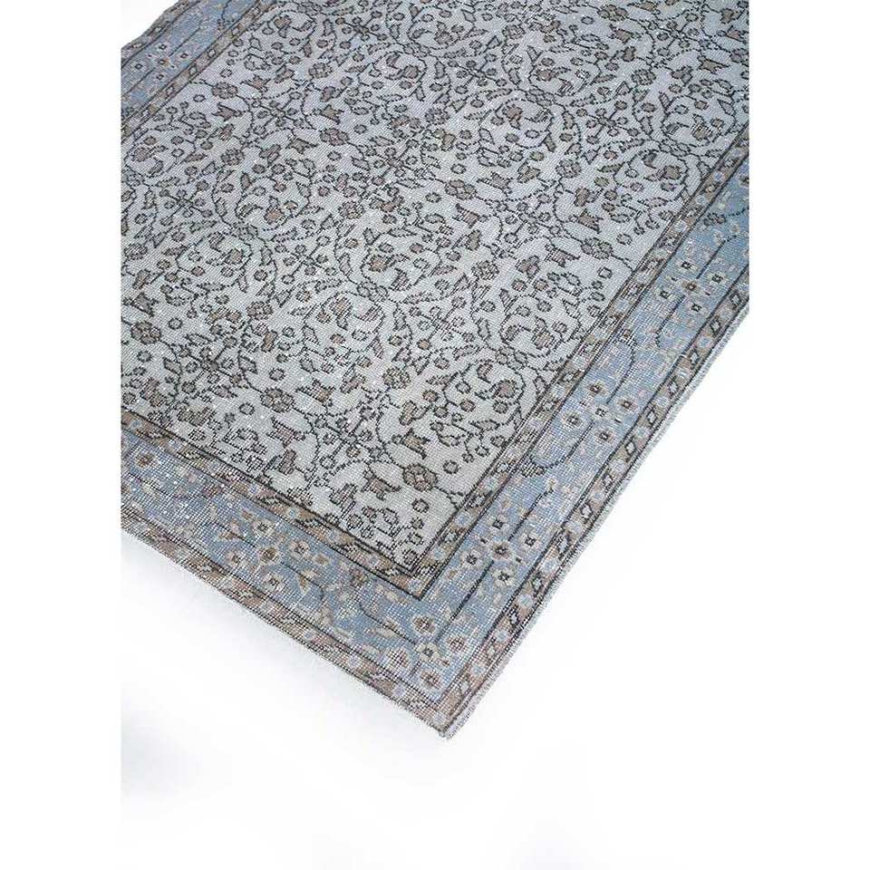 Alfombra de Lana Azul Vintage Anudada a Mano con Patrón Floral y Abstracto para Sala de Estar, Pasillo, Entrada y Dormitorio - Pae-1747