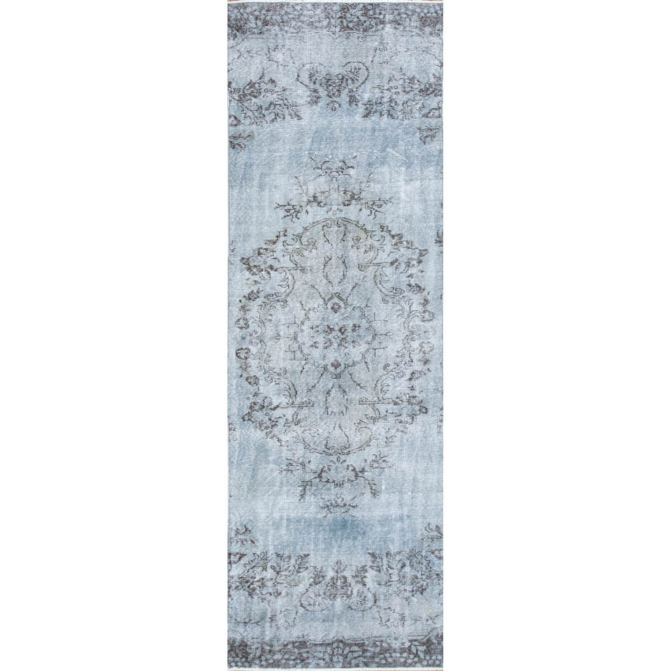 Alfombra de Lana Azul Vintage Anudada a Mano Pae-1868, Rectangular con Medallón, para Pasillo, Sala de Estar, Estilo Jaipur, Hecho en EE. UU.
