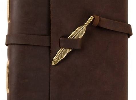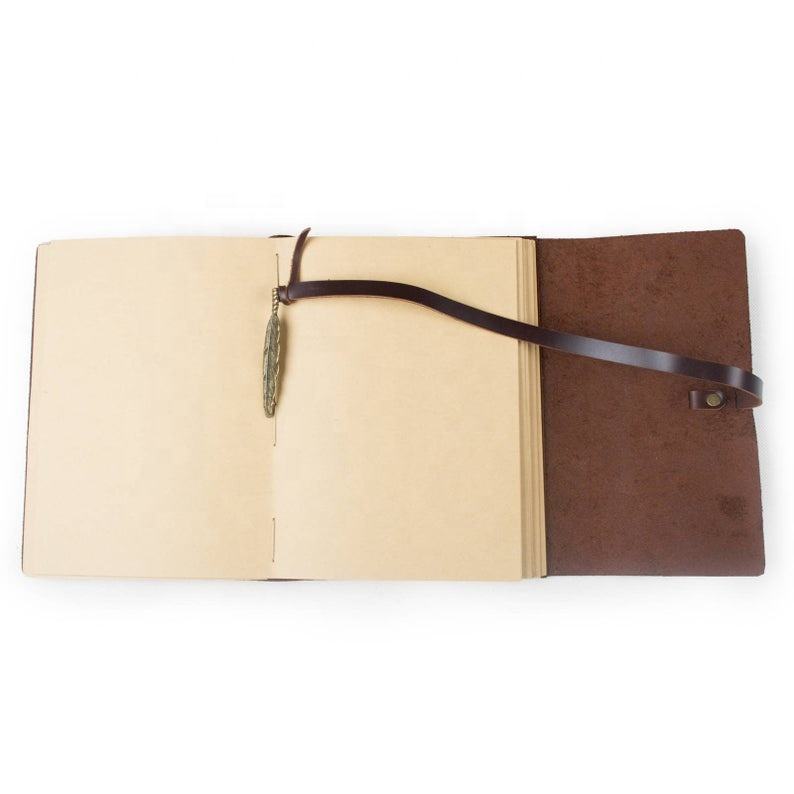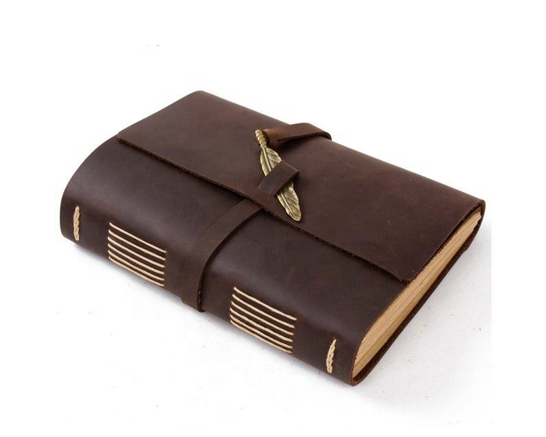 Diario de cuero con cierre de plumas de latón Vintage, diario encuadernado, diario de viaje, diario de logotipo personalizado