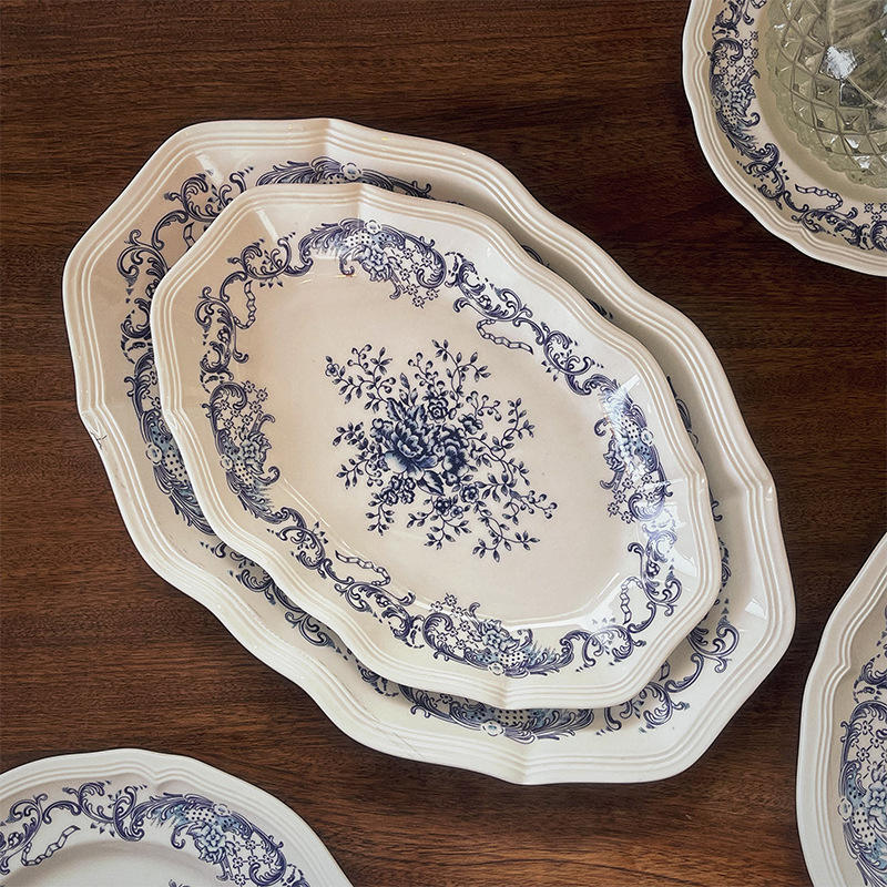 Platos de cena de flor azul Juego de vajilla de cerámica vintage