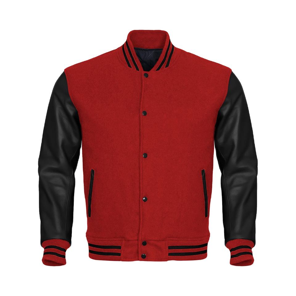 Chaqueta Clásica Vintage de Lana y Cuero Estilo Bomber, Chaqueta Universitaria de Béisbol con Letras, Negra y Roja