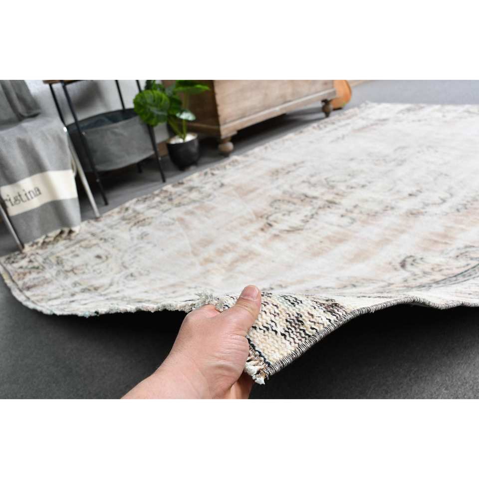 Alfombra de látex de lana de pelo medio ecológica turca clásica Vintage Beige 5,4X8,6 pies área grande Rectangular Patchwork abstracto