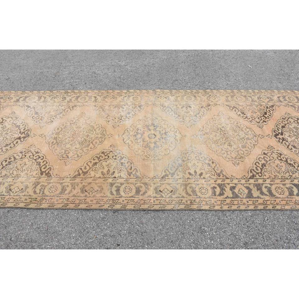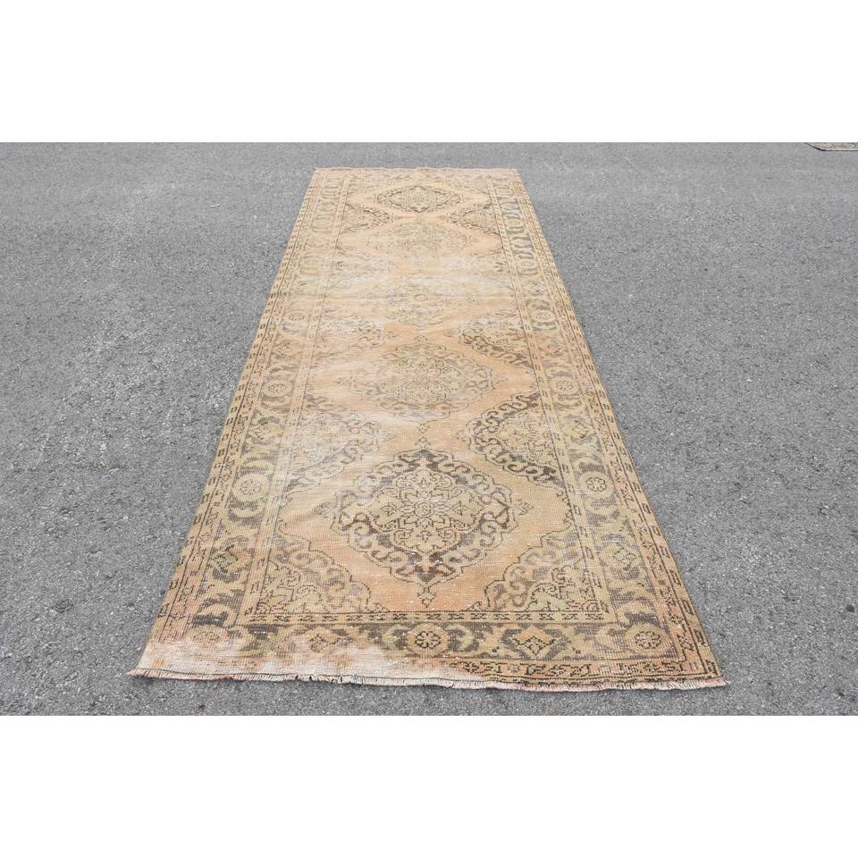 Alfombra Turca Clásica Vintage Hecha a Mano Ecológica Beige Marrón Lana Pila Media Patchwork Diseño 4x12ft Rectangular Pasillo Adolescente