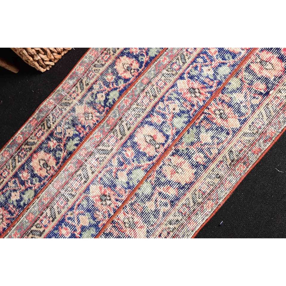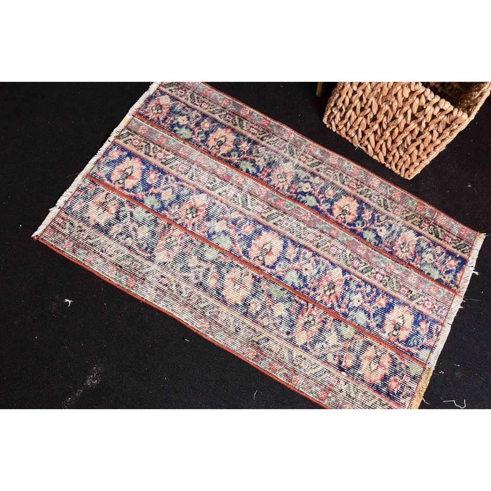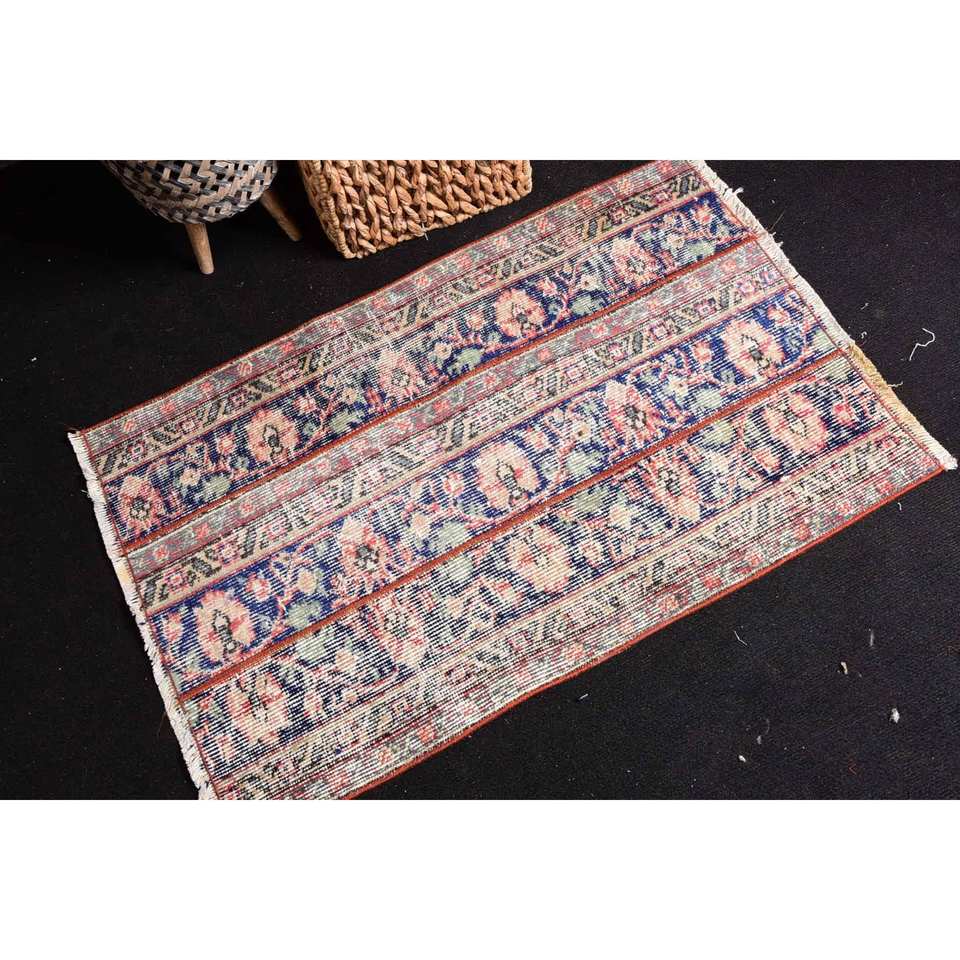 Alfombra Floral de lana clásica Vintage, 2x3,2 pies, diseño de retales azul y rojo, área grande, rectángulo, Kilim, látex para decoración de habitación de pasillo