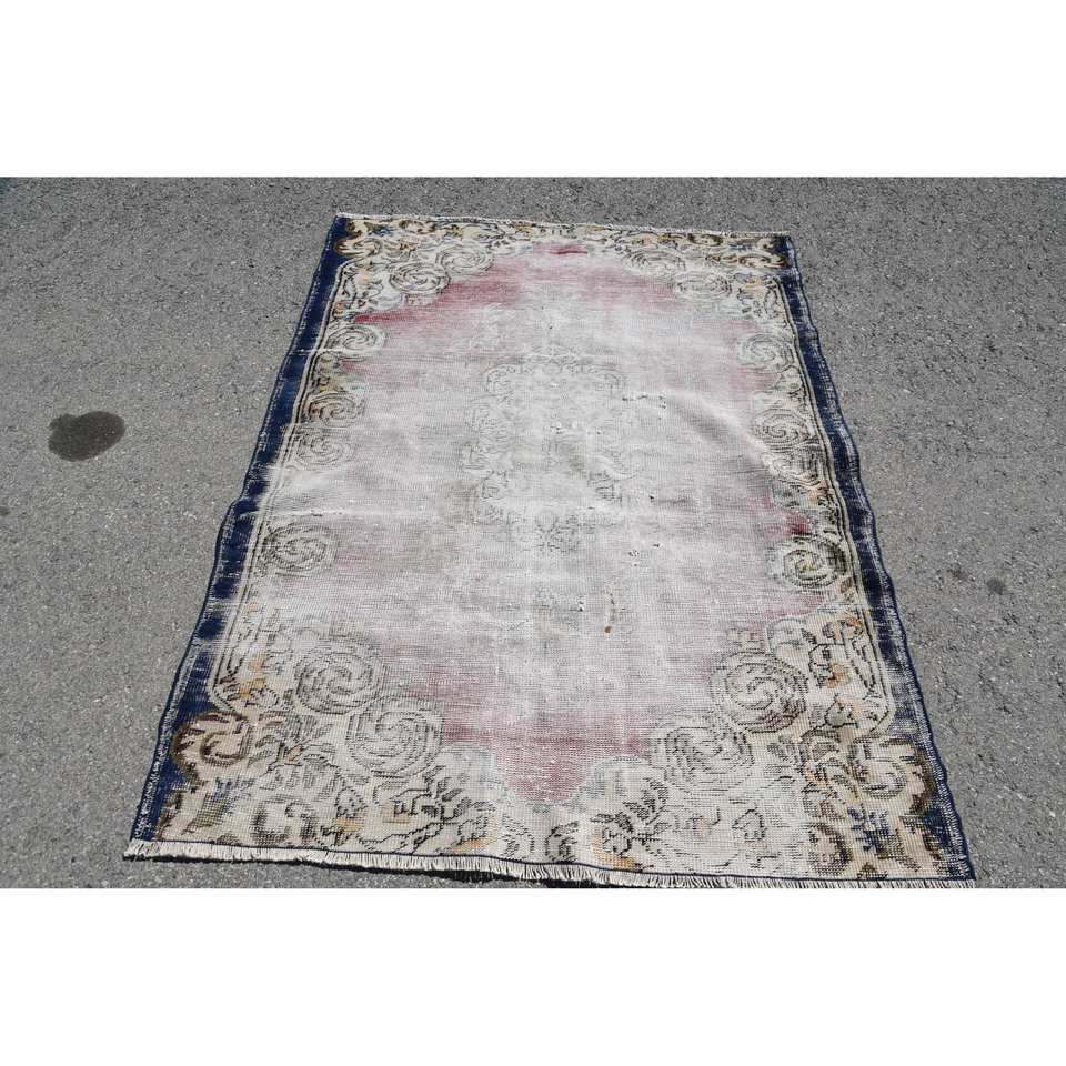 Alfombra clásica vintage de lana, diseño de retales beige y azul, hecha a mano, área grande, felpa de látex rectangular para vivir (4,7 pies X 6,1 pies)
