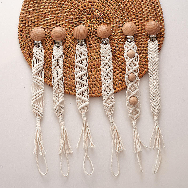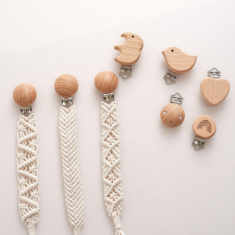 Clip para chupete de bebé de ganchillo Vintage, cadena para chupete tejida a mano, clip para chupete de madera de haya, soporte para pezones DIY, dentición para bebé