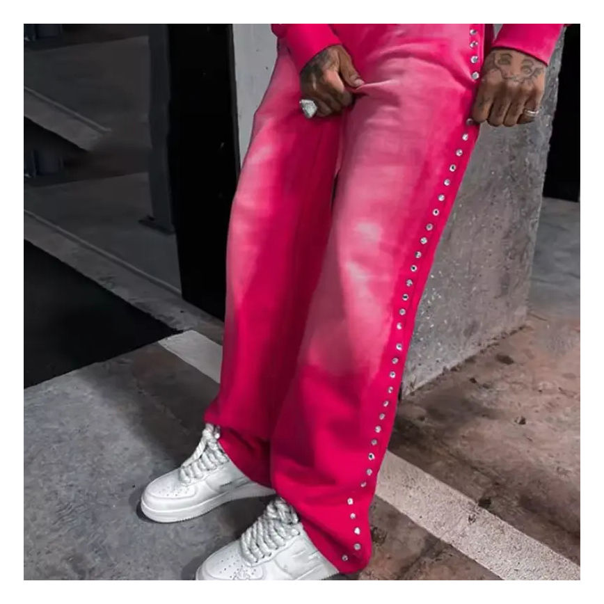 Pantalones Deportivos Vintage Personalizados para Hombre, Pantalones Lavados con Pedrería Lateral, Pantalones Cargo Holgados de Algodón Francés para Hombre