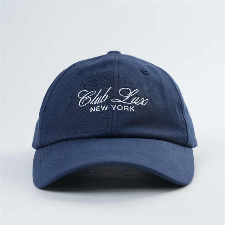 Sombreros de papá vintage con letras bordadas, sombreros azul marino personalizados con fuente bordada, gorras de béisbol de algodón azul marino con logotipo personalizado