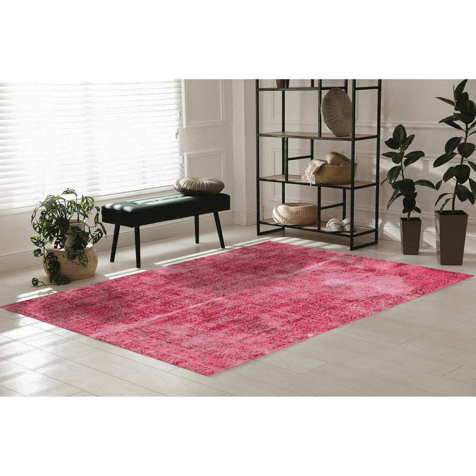 Alfombra Estampada de Diseño Vintage - Rosa, Plana, Moderna, Antideslizante, con Pelo Suave