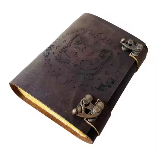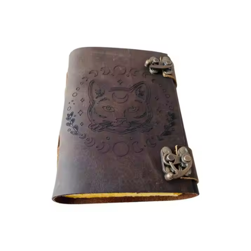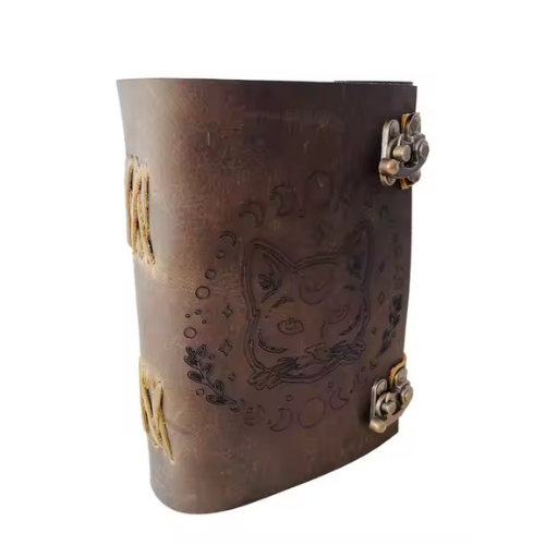 Libro de gato en relieve Vintage, diario de hechizos, cuaderno de regalo Wiccan de Halloween de tapa dura de cuero genuino clásico para escribir