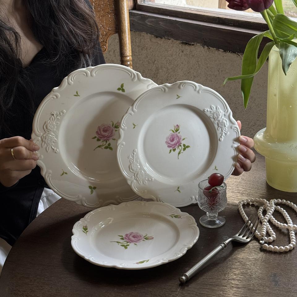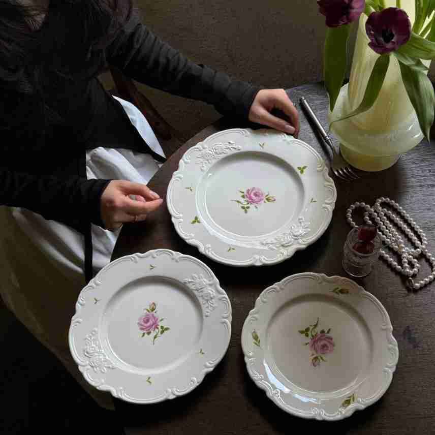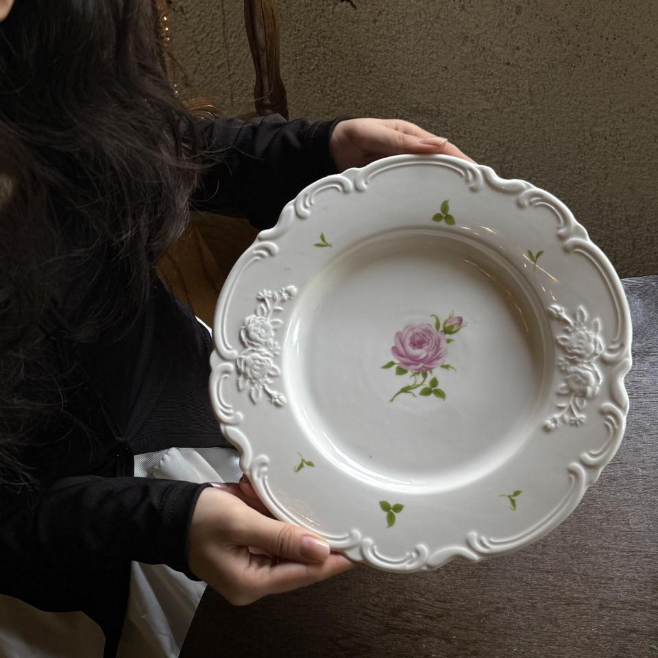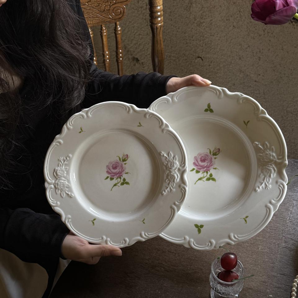 Juego de platos de cena de cerámica en relieve Vintage, juego de platos de carne de postre de porcelana con estampado de flores para alquiler de eventos de boda
