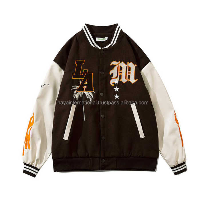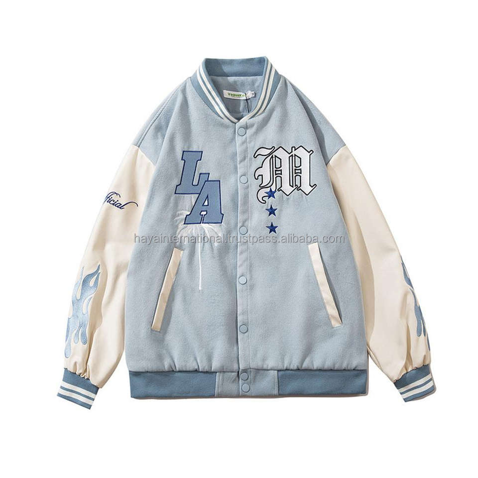 Chaqueta Vintage de fieltro con letras bordadas para hombre y mujer, chaqueta de béisbol para Universidad