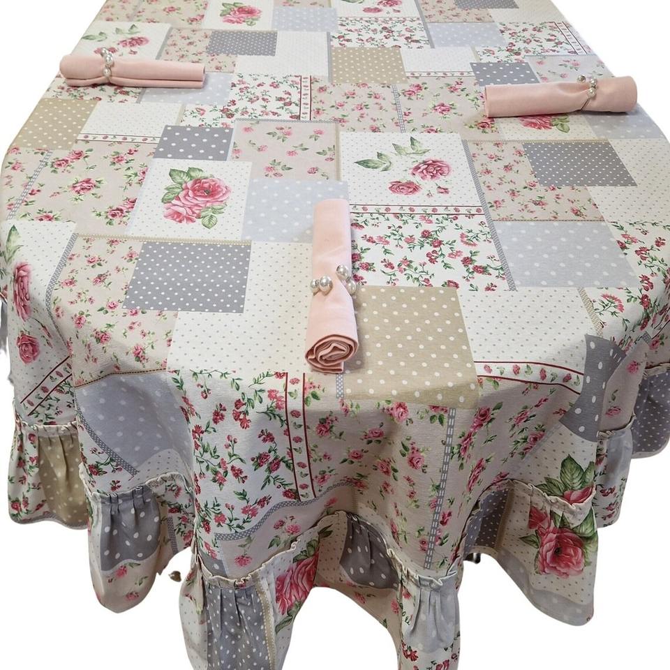Mantel Vintage Elegante para Decoraciones de Boda, Mantel de Lino 100% con Bordado Floral, Cubierta de Mesa Superior con Volantes