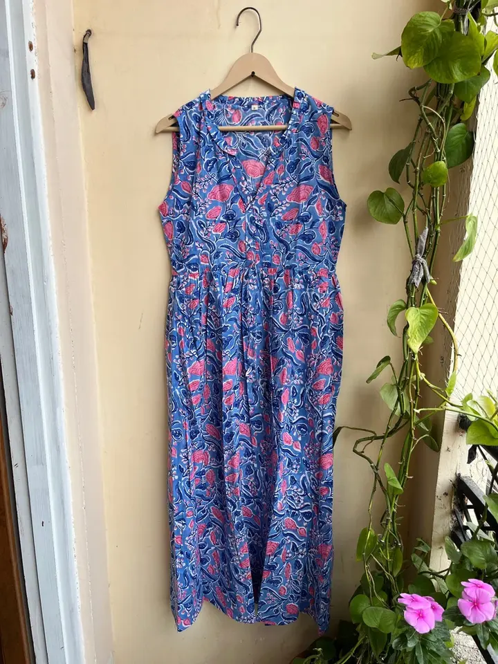 Vestido Maxi bordado floral Vintage para mujer estampado a mano sin mangas de algodón indio con decoración de borlas