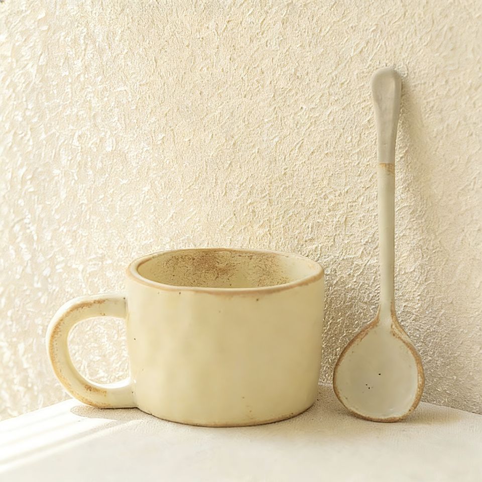 Taza de Café de Cerámica con Diseño Floral Vintage y Cuchara para Remover Hecha a Mano, para el Hogar, Té de la Tarde Elegante y Regalos