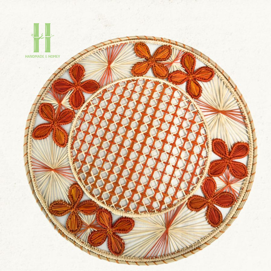 Salvamanteles Redondo de Papel con Diseño Floral Vintage, Hecho a Mano, Estilo Boho Rústico, Decoración para Cocina, Aislante del Calor