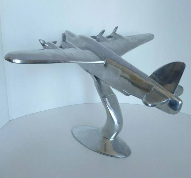 Modelo de Hidroavión Vintage de Aluminio Fundido Pesado, Diseño Art Deco, Decoración Artesanal para Mesa con Soporte en W